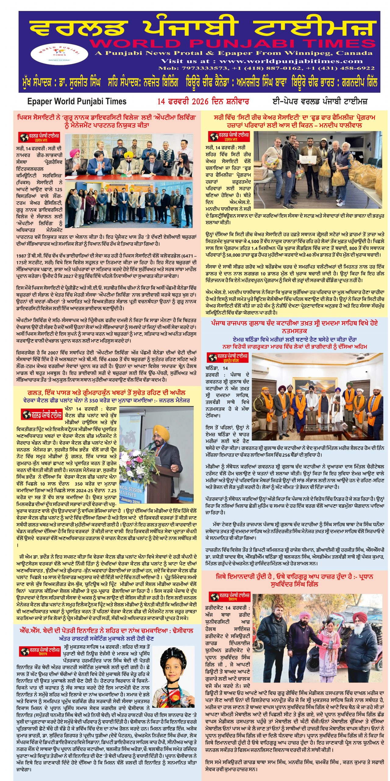Posted inਈ-ਪੇਪਰ World Punjabi Times-14.02.2026 14.02.26Download Posted by worldpunjabitimes February 14, 2026