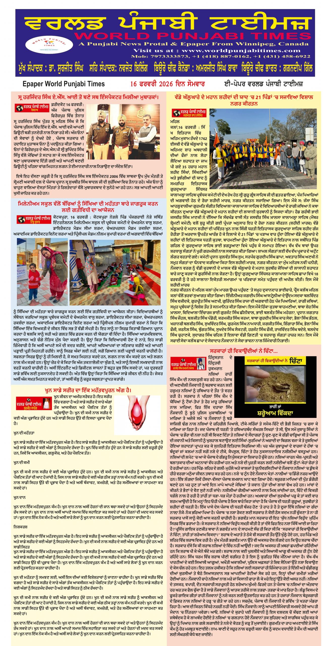 Posted inਈ-ਪੇਪਰ World Punjabi Times-16.02.2026 16.02.2026Download Posted by worldpunjabitimes February 16, 2026