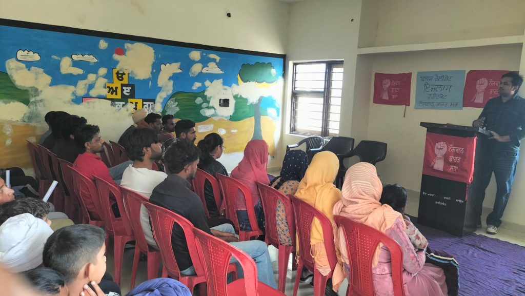 ਅੱਜ ਨੌਜਵਾਨ ਭਾਰਤ ਸਭਾ ਵੱਲੋਂ ਨੌਜਵਾਨ ਭਾਰਤ ਸਭਾ ਦੇ ਬਲਾਕ ਫਰੀਦਕੋਟ ਦਾ ਡੈਲੀਗੇਟ ਇਜਲਾਸ ਕੀਤਾ ਗਿਆ, ਜਿਸ ਵਿੱਚ 8 ਪਿੰਡਾਂ ਦੇ ਨੌਜਵਾਨਾਂ ਵੱਲੋਂ ਸ਼ਮੂਲੀਅਤ ਕੀਤੀ ਗਈ! ਇਸ ਮੌਕੇ ਪੰਜਾਬ ਸਟੂਡੈਂਟਸ ਯੂਨੀਅਨ ਦੇ ਸੂਬਾ ਆਗੂ ਹਰਵੀਰ ਕੌਰ ਗੰਧੜ ਵੱਲੋਂ ਭਰਾਤਰੀ ਸੰਦੇਸ਼ ਦਿੱਤਾ ਗਿਆ! ਨੌਜਵਾਨ ਭਾਰਤ ਸਭਾ ਦੇ ਸੂਬਾ ਵਿੱਤ ਸਕੱਤਰ ਨੌ ਨਿਹਾਲ ਸਿੰਘ ਦੀਪ ਸਿੰਘ ਵਾਲਾ ਨੇ ਕਿਹਾ ਕਿ ਨੌਜਵਾਨ ਭਾਰਤ ਸਭਾ ਹਿੰਦੁਸਤਾਨ ਸੋਸ਼ਲਿਸਟ ਪਬਲਿਕ ਐਸੋਸੀਏਸ਼ਨ ਦਾ ਜਨਤਕ ਚਿਹਰਾ ਸੀ, ਜਿਸ ਦੀ ਸਥਾਪਨਾ ਮਾਰਚ 1926 ਨੂੰ ਭਗਤ ਸਿੰਘ ਨੇ ਕੀਤੀ ਸੀ, ਇਸ ਦਾ ਮੁੱਖ ਮਕਸਦ ਕਿਸਾਨਾਂ ਨੌਜਵਾਨਾਂ ਅਤੇ ਮਜ਼ਦੂਰਾਂ ਨੂੰ ਬਰਿਸ਼ਟ ਰਾਜ ਖਿਲਾਫ ਸੰਘਰਸ਼ ਵਿੱਚ ਸ਼ਾਮਿਲ ਕਰਨਾ ਸੀ, ਨੌਜਵਾਨ ਭਾਰਤ ਸਭਾ ਵਿੱਚ ਹਿੰਦੂ ਮੁਸਲਿਮ ਅਤੇ ਸਿੱਖ ਭਾਈਚਾਰੇ ਦੇ ਮੈਂਬਰ ਸਨ, ਜੋ ਭਾਸ਼ਣ ਜਨਤਕ ਮੀਟਿੰਗਾਂ ਅਤੇ ਵਿਰੋਧ ਪ੍ਰਦਰਸ਼ਨਾਂ ਰਾਹੀਂ ਲੋਕਾਂ ਨੂੰ ਬਰਿਸ਼ਟ ਰਾਜ ਦੇ ਸਾਮਰਾਜਵਾਦ ਖਿਲਾਫ ਜਾਗਰੂਕ ਕਰਦੇ ਸਨ, ਭਾਵੇਂ ਕਾਗਜੀ ਤੌਰ ‘ਤੇ ਭਾਰਤ 15 ਅਗਸਤ 1947 ਨੂੰ ਆਜ਼ਾਦ ਹੋ ਗਿਆ ਪਰ ਫਿਰ ਵੀ ਅੱਜ ਦਾ ਨੌਜਵਾਨ ਪੜ੍ਹਾਈ ਲਿਖਾਈ ਕਰਨ ਦੇ ਬਾਵਜੂਦ ਬੇਰੁਜ਼ਗਾਰੀ ਨਾਲ ਜੂਝ ਰਿਹਾ ਹੈ, ਮੰਗਿਆਈ ਨੇ ਉਸ ਦਾ ਲੱਕ ਤੋੜ ਰੱਖਿਆ ਹੈ, ਦੇਸ਼ ਵਿੱਚ ਪਸਰੇ ਹੋਏ ਭਰਿਸ਼ਟਾਚਾਰ ਕਾਰਨ ਨੌਜਵਾਨ ਵਰਗ ਭਾਰੀ ਨਿਰਾਸ਼ਾ ਵਿੱਚ ਹੈ, ਜਿਸ ਨਿਰਾਸ਼ਾ ਵਿੱਚੋਂ ਨਿਕਲਣ ਦਾ ਇੱਕੋ ਇੱਕ ਰਾਹ ਸੰਘਰਸ਼ ਦਾ ਰਾਹ ਹੈ ਪਰ ਦੇਸ਼ ਦੀਆਂ ਸਰਕਾਰਾਂ ਨੇ ਨੌਜਵਾਨਾਂ ਨੂੰ ਲਾਮਬੰਦ ਹੋਣ ਤੋਂ ਰੋਕਣ ਲਈ ਨਸ਼ਿਆਂ ਦਾ ਸਹਾਰਾ ਲਿਆ ਹੋਇਆ ਪਰ ਫਿਰ ਵੀ ਪਿਛਲੇ ਸਮਿਆਂ ਵਿੱਚ ਭਾਰਤ ਦੇ ਗੁਆਂਢੀ ਦੇਸ਼ਾਂ ਵਿੱਚ ਨੌਜਵਾਨਾਂ ਨੇ ਹਾਕਮਾਂ ਨੂੰ ਚਿੰਤਾ ਵਿੱਚ ਪਾਈ ਰੱਖਿਆ ਹੈ, ਭਾਵੇਂ ਉਹਨਾਂ ਦੇਸ਼ਾਂ ਵਿੱਚ ਬਿਨਾਂ ਕਿਸੇ ਯੋਗ ਅਗਵਾਈ ਕਰਨ ਉਹਨਾਂ ਦੇ ਸੰਘਰਸ਼ ਕਿਸੇ ਸਿਰੇ ਨਹੀਂ ਲੱਗ ਸਕੇ ਹਨ ਪਰ ਫਿਰ ਵੀ ਇਹ ਨੌਜਵਾਨਾ ਦੇ ਸੰਘਰਸ਼ ਹੀ ਹਨ, ਜਿਸ ਕਾਰਨ ਪਿਛਲੇ ਸਮਿਆਂ ਵਿੱਚੋਂ ਇਨਕਲਾਬ ਆਏ, ਲੋਕਾਂ ਦੇ ਜੀਵਨ ਪੱਧਰ ਵਿੱਚ ਸੁਧਾਰ ਹੋਇਆ ਨੌਜਵਾਨ ਭਾਰਤ ਸਭਾ ਸਮਝਦੀ ਹੈ ਕਿ ਭਾਰਤ ਦੇ ਸੱਤਾਧਾਰੀਆਂ ਨੇ ਸਾਮਰਾਜੀਆਂ ਦੀ ਦਲਾਲੀ ਕਰਦਿਆਂ ਹੋਇਆਂ ਭਾਰਤ ਦੇ ਲੋਕਾਂ ਦੇ ਹਿੱਤਾਂ ਨੂੰ ਖੂਹ ਖਾਤੇ ਸੁੱਟਿਆ ਹੋਇਆ ਹੈ ਅਤੇ ਸੱਤਾਧਾਰੀ ਲੋਕ ਹਿੱਤਾਂ ਨੂੰ ਕੁਰਬਾਨ ਕਰਦੇ ਹੋਏ ਆਪ ਐਸ਼ ਦੀ ਜ਼ਿੰਦਗੀ ਜਿਉਂ ਰਹੇ ਹਨ ਅਤੇ ਲੋਕਾਂ ਨੂੰ ਨਰਕ ਦੀ ਜ਼ਿੰਦਗੀ ਜਿਉਣ ਲਈ ਮਜਬੂਰ ਕਰ ਰਹੇ ਹਨ। ਨੌਜਵਾਨ ਭਾਰਤ ਸਭਾ ਭਗਤ ਸਿੰਘ ਦੇ ਰਾਹ ਦੀ ਅਗਵਾਈ ਲੈਂਦਿਆਂ ਮਜ਼ਦੂਰਾਂ ਕਿਸਾਨਾਂ ਵਿਦਿਆਰਥੀਆਂ ਅਤੇ ਹੋਰ ਵਰਗਾਂ ਨੂੰ ਨਾਲ ਲੈ ਕੇ ਉਹਨਾਂ ਵੱਲੋਂ ਚੱਲ ਰਹੇ ਸੰਘਰਸ਼ਾਂ ਨਾਲ ਮੋਢੇ ਨਾਲ ਮੋਢਾ ਜੋੜ ਕੇ ਸੁਨਹਿਰੇ ਭਵਿੱਖ ਲਈ ਯਤਨਸ਼ੀਲ ਹੈ! ਇਸ ਮੌਕੇ ਨੌਜਵਾਨ ਭਾਰਤ ਸਭਾ ਵੱਲੋ ਕੀਤੇ ਗਏ ਸੰਘਰਸਾਂ ਦੀ ਰਿਪੋਰਟ ਪੇਸ਼ ਕੀਤੀ ਗਈ, ਸ਼ਹੀਦ ਭਗਤ ਸਿੰਘ ਦੀ ਵਿਚਾਰਧਾਰਾ ‘ਤੇ ਮੌਜੂਦਾ ਸਮੇਂ ਦੀ ਸਥਿਤੀ ਤੋ ਨੌਜਵਾਨਾਂ ਨੂੰ ਜਾਣੂ ਕਰਵਾਇਆ ਗਿਆ ਅਤੇ ਸੰਘਰਸ਼ ਦੇ ਮੈਦਾਨ ਵਿੱਚ ਨਿਤਰ ਲਈ ਪ੍ਰੇਰਿਤ ਕੀਤਾ ਗਿਆ ਅਤੇ 23 ਮਾਰਚ ਨੂੰ ਖਟਕੜ ਕਲਾਂ ਵਿਖੇ ਨੌਜਵਾਨ ਭਾਰਤ ਸਭਾ ਵੱਲੋਂ ਸੂਬਾ ਪੱਧਰੀ ਨੌਜਵਾਨਾਂ ਦਾ ਇਕੱਠ ਕਰਕੇ ਨੌਜਵਾਨ ਭਾਰਤ ਸਭਾ ਦਾ 100 ਸਾਲਾ ਮਨਾਇਆ ਜਾਵੇਗਾ, ਜਿਸ ਦੀਆਂ ਤਿਆਰੀਆਂ ਲਈ ਪਿੰਡਾਂ ਵਿੱਚ ਰੈਲੀਆਂ ਮੀਟਿੰਗਾਂ ਕਰਕੇ ਮੁਹਿੰਮ ਚਲਾਉਣ ਦਾ ਫੈਸਲਾ ਕੀਤਾ ਗਿਆ! ਇਸ ਮੌਕੇ ਸਟੇਜ ਸੰਚਾਲਕ ਦੀ ਭੂਮਿਕਾ ਲਖਵੀਰ ਸਿੰਘ ਬੀਲੇਵਾਲਾ ਜ਼ਿਲਾ ਸਕੱਤਰ ਨੌਜਵਾਨ ਭਾਰਤ ਸਭਾ ਵੱਲੋਂ ਨਿਭ