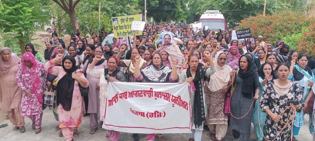 ਆਂਗਣਵਾੜੀ ਵਰਕਰਾਂ ਤੇ ਹੈਲਪਰਾਂ ਨੇ ਫਰੀਦਕੋਟ ਵਿਖੇ ਕੈਬਨਿਟ ਮੰਤਰੀ ਦੇ ਘਰ ਅੱਗੇ ਕੀਤਾ ਰੋਸ ਪ੍ਰਦਰਸ਼ਨ