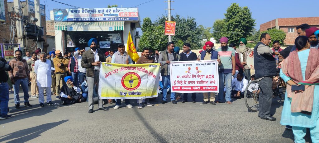 ਪਿਛਲੇ ਕਈ ਦਿਨਾਂ ਤੋਂ ਜ਼ਿਲਾ ਸਿਹਤ ਵਿਭਾਗ ਦੇ ਸਮੂਹ ਕਰਮਚਾਰੀ ਅਤੇ ਅਧਿਕਾਰੀਆਂ ਵੱਲੋਂ ਜ਼ਿਲਾ ਟੀ.ਬੀ ਕਲੀਨਿਕ ਫਰੀਦਕੋਟ ’ਚ ਕੰਮ ਕਰਦੇ ਹਰਮਨਦੀਪ ਅਰੋੜਾ ਨਾਲ ਡਾਕਟਰ ਮਨਦੀਪ ਕੌਰ ਖੰਗੂੜਾ, ਸਹਾਇਕ ਸਿਵਲ ਸਰਜਨ ਕਮ ਜਿਲਾ ਟੀਬੀ ਅਫ਼ਸਰ ਵੱਲੋਂ ਕੀਤੀ ਸ਼ਰਮਨਾਕ ਕਾਰਵਾਈ ਤੇ ਸਿਹਤ ਵਿਭਾਗ ਦੇ ਸਮੂਹ ਮੁਲਾਜਮਾਂ ਵੱਲੋਂ ਜਿਲੇ ਦੀਆਂ ਸਿਹਤ ਸੇਵਾਵਾਂ ਠੱਪ ਕਰਕੇ ਧਰਨੇ ਪ੍ਰਦਰਸ਼ਨ ਨਿਰੰਤਰ ਜਾਰੀ ਹਨ।ਇਸੇ ਹੀ ਲੜੀ ਤਹਿਤ ਸਿਹਤ ਕਾਮਿਆਂ ਅਤੇ ਹੋਰ ਭਰਾਤਰੀ ਜਥੇਬੰਦੀਆਂ ਦੇ ਵੱਲੋਂ ਸੰਘਰਸ਼ ਨੂੰ ਤੇਜ ਕਰਦਿਆਂ ਸਥਾਨਕ ਤਲਵੰਡੀ ਚੌਕ ਪੁਲ ਤੇ ਚੱਕਾ ਜਾਮ ਕਰ ਦਿੱਤਾ ਗਿਆ ਅਤੇ ਧਰਨਾ ਪ੍ਰਦਰਸ਼ਨ ਕੀਤਾ ਗਿਆ। ਇਸ ਮੌਕੇ ਵੱਖ-ਵੱਖ ਬੁਲਾਰਿਆਂ ਨੇ ਜਿਲਾ ਪ੍ਰਸ਼ਾਸ਼ਨ ਅਤੇ ਸਰਕਾਰ ਨੂੰ ਅਪੀਲ ਕੀਤੀ ਕਿ ਜਲਦ ਤੋਂ ਜਲਦ ਸਿਹਤ ਸਟਾਫ, ਮਰੀਜਾਂ ਅਤੇ ਆਮ ਲੋਕਾਂ ਨਾਲ ਮਾੜਾ ਵਿਵਹਾਰ ਅਤੇ ਗਲਤ ਸ਼ਬਦਾਬਲੀ ਵਰਤਣ ਵਾਲੀ ਇਸ ਮਹਿਲਾ ਡਾਕਟਰ ਨੂੰ ਤੁਰੰਤ ਚਲਦਾ ਕੀਤਾ ਜਾਵੇ ਅਤੇ ਉਸਦੀ ਬਦਲੀ ਜਿਲੇ ਤੋਂ ਬਾਹਰ ਕੀਤੀ ਜਾਵੇ। ਜਿਕਰਯੋਗ ਹੈ ਕਿ ਸਿਹਤ ਵਿਭਾਗ ਦੇ ਕਰਮਚਾਰੀ ਹਰਮਨਦੀਪ ਅਰੋੜਾ ਨੂੰ ਡਾ. ਮਨਦੀਪ ਕੌਰ ਖੰਗੂੜਾ ਵੱਲੋਂ ਮਾਨਸਿਕ ਤੌਰ ਤੇ ਪ੍ਰੇਸ਼ਾਨ ਕਰਕੇ ਖੁਦਕੁਸ਼ੀ ਕਰਨ ਲਈ ਮਜਬੂਰ ਕੀਤਾ ਗਿਆ ਸੀ। ਡਾ. ਮਨਦੀਪ ਕੌਰ ਖੰਗੂੜਾ ਤੋਂ ਸਿਹਤ ਵਿਭਾਗ ਵਿੱਚ ਕੰਮ ਕਰਦੇ ਕਲੈਰੀਕਲ ਕਾਮੇ, ਫੀਲਡ ਵਿੱਚ ਕੰਮ ਕਰਦੇ ਪੈਰਾ ਮੈਡੀਕਲ ਕਾਮੇ, ਮੈਲਟੀਪਰਪਜ਼ ਕਾਮੇ, ਐਨ.ਐਚ.ਐਮ ਕਾਮੇ ਬੜੇ ਲੰਮੇ ਸਮੇਂ ਤੋਂ ਉਸ ਦੇ ਮਾੜੇ ਵਤੀਰੇ ਕਾਰਨ ਅਤੇ ਧਮਕੀਆਂ ਭਰੇ ਲਹਿਜ਼ੇ ਤੋਂ ਪ੍ਰੇਸ਼ਾਨ ਚੱਲੇ ਆ ਰਹੇ ਹਨ। ਸਾਂਝੀ ਐਕਸ਼ਨ ਕਮੇਟੀ ਦੇ ਮੈਂਬਰਾਂ ਨੇ ਜਾਣਕਾਰੀ ਦਿੰਦਿਆਂ ਦੱਸਿਆ ਕਿ ਇਹ ਸਾਰਾ ਮਾਮਲਾ ਸੀਨੀਅਰ ਸਿਹਤ ਅਧਿਕਾਰੀਆਂ, ਜ਼ਿਲਾ ਪ੍ਰਸ਼ਾਸ਼ਨ ਅਤੇ ਸਰਕਾਰ ਦੇ ਨੁਮਾਇੰਦਿਆਂ ਦੇ ਧਿਆਨ ਵਿੱਚ ਲਿਆਂਦਾ ਜਾ ਚੁੱਕਾ ਹੈ ਪਰ ਅਜੇ ਤੱਕ ਇਸ ਅਫ਼ਸਰ ਖ਼ਿਲਾਫ਼ ਕੋਈ ਵੀ ਕਾਰਵਾਈ ਨਹੀਂ ਹੋਈ, ਜਿਸ ਦੇ ਰੋਸ ਵਜੋਂ ਅੱਜ ਤਲਵੰਡੀ ਰੋਡ ਪੁਲ ਅਤੇ ਸਥਾਨਕ ਡਿਪਟੀ ਕਮਿਸ਼ਨਰ ਦਫ਼ਤਰ ਦਾ ਘਿਰਾਓ ਕਰਕੇ ਜੰਮ ਕੇ ਨਾਅਰੇਬਾਜ਼ੀ ਕੀਤੀ ਅਤੇ ਸਮੂਹ ਕਾਮਿਆਂ ਨੇ ਉਕਤ ਡਾਕਟਰ ਦੀ ਜ਼ਿਲੇੇ ਤੋਂ ਬਾਹਰ ਬਦਲੀ ਦੀ ਮੰਗ ਕੀਤੀ। ਜ਼ਿਲੇੇ ਦੀਆਂ ਸਿਰਫ਼ ਐਮਰਜੈਂਸੀ ਸੇਵਾਵਾਂ ਨੂੰ ਛੱਡ ਕੇ ਸਾਰੀਆਂ ਸਿਹਤ ਸੇਵਾਵਾਂ ਬੰਦ ਕਰਕੇ ਜ਼ਿਲੇੇ ਦੀਆਂ ਹੋਰ ਭਰਾਤਰੀ ਜਥੇਬੰਦੀਆਂ ਦੇ ਸਹਿਯੋਗ ਨਾਲ ਸਾਂਝੀ ਐਕਸ਼ਨ ਕਮੇਟੀ ਦਾ ਗਠਨ ਕੀਤਾ ਗਿਆ ਹੈ।