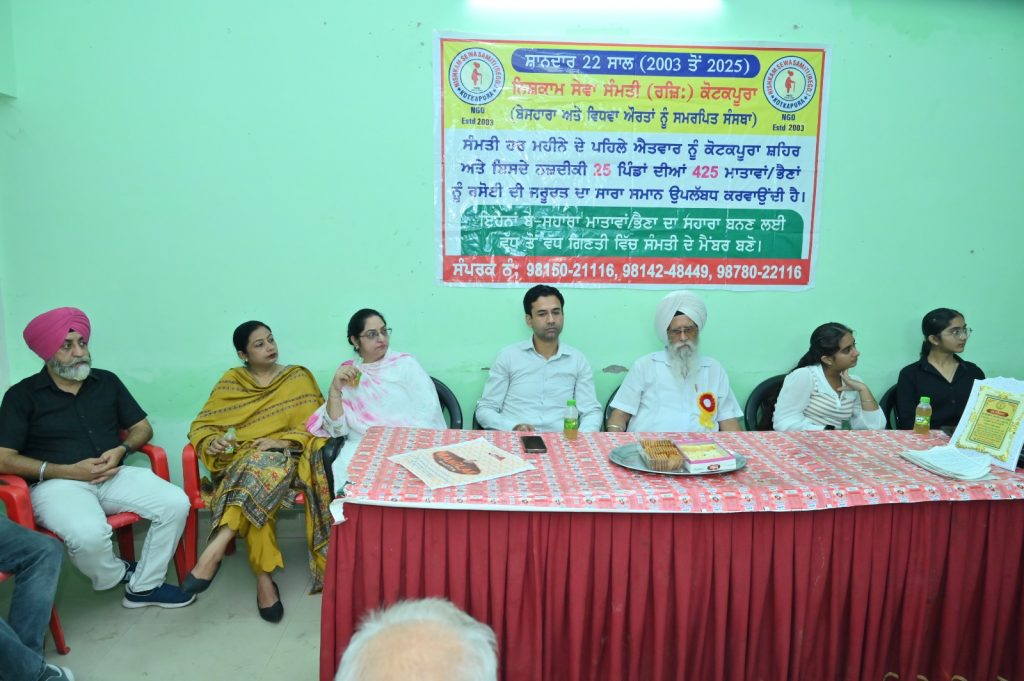 ਨਿਸ਼ਕਾਮ ਸੇਵਾ ਸੰਮਤੀ (ਰਜਿ.) ਕੋਟਕਪੂਰਾ ਵੱਲੋਂ 267ਵਾਂ ਮਾਸਿਕ ਮੁਫ਼ਤ ਰਾਸ਼ਨ ਵੰਡ ਸਮਾਰੋਹ 7 ਸਤੰਬਰ 2025 ਨੂੰ ਅਗਰਵਾਲ ਭਵਨ, ਕੋਟਕਪੂਰਾ ਵਿੱਚ ਸ਼ਰਧਾ, ਸੇਵਾ-ਭਾਵਨਾ ਅਤੇ ਨਿਮਰਤਾ ਨਾਲ ਸਫਲਤਾਪੂਰਵਕ ਸੰਪੰਨ ਹੋਇਆ। ਇਹ ਕੇਵਲ ਇੱਕ ਮੁਫ਼ਤ ਰਾਸ਼ਨ ਵੰਡਣ ਦਾ ਕਾਰਜ ਨਹੀਂ ਸੀ, ਬਲਕਿ ਇਨਸਾਨੀਅਤ ਪ੍ਰਤੀ ਸਮਰਪਿਤ ਨਿਰਲੋਭ ਸੇਵਾ ਦਾ ਪ੍ਰਤੀਕ ਸੀ। ਪਿਛਲੇ ਕਰੀਬ 22 ਸਾਲਾਂ ਤੋਂ ਸੰਮਤੀ ਸਿਰਫ ਆਪਣੇ ਮੈਂਬਰਾਂ ਦੇ ਯੋਗਦਾਨ ਨਾਲ—ਬਿਨਾਂ ਕਿਸੇ ਸਰਕਾਰੀ ਜਾਂ ਬਾਹਰੀ ਸਹਾਇਤਾ ਤੋਂ ਆਮਦਨ-ਰਹਿਤ, ਵਿਧਵਾ ਅਤੇ ਲੋੜਵੰਦ ਔਰਤਾਂ ਨੂੰ ਮੁਫ਼ਤ ਰਾਸ਼ਨ ਸਹਾਇਤਾ ਦੇ ਰਹੀ ਹੈ। ਸਮਾਰੋਹ ਦੀ ਸ਼ੁਰੂਆਤ ਭਗਵਾਨ ਦੇ ਨਾਮ ਸਿਮਰਨ ਨਾਲ ਹੋਈ ਜਿਸ ਨਾਲ ਹਾਜ਼ਰੀਨ ਨੂੰ ਅੰਦਰੂਨੀ ਸ਼ਾਂਤੀ ਅਤੇ ਆਤਮਿਕ ਉਤਸ਼ਾਹ ਦੀ ਅਨੁਭੂਤੀ ਹੋਈ। ਇਸ ਕਾਰਜ ਦੀ ਅਗਵਾਈ ਸੰਸਥਾ ਦੇ ਸਰਪ੍ਰਸਤ ਯਸ਼ਪਾਲ ਅਗਰਵਾਲ ਜੀ ਅਤੇ ਪ੍ਰਧਾਨ ਮਨੋਜ ਦਿਵੇਦੀ ਜੀ ਵੱਲੋਂ ਕੀਤੀ ਗਈ। ਹਰ ਮਹੀਨੇ ਲਗਭਗ 435 ਲੋੜਵੰਦ ਮਹਿਲਾਵਾਂ ਨੂੰ, ਜੋ ਕੋਟਕਪੂਰਾ ਸ਼ਹਿਰ ਅਤੇ ਨੇੜਲੇ ਪਿੰਡਾਂ ਵਿੱਚ ਵੱਸਦੀਆਂ ਹਨ, ਉਨ੍ਹਾਂ ਦੀ ਰੋਜ਼ਾਨਾ ਲੋੜ ਮੁਤਾਬਕ ਤਿਆਰ ਕੀਤਾ ਗਿਆ ਮੁਫ਼ਤ ਰਾਸ਼ਨ ਉਹਨਾਂ ਦੇ ਘਰ ਤੱਕ ਹਰ ਮਹੀਨੇ ਪਹੁੰਚਾਇਆ ਜਾਂਦਾ ਹੈ। ਸੰਮਤੀ ਦੇ ਜਨਰਲ ਸਕੱਤਰ ਲੈਕਚਰਾਰ ਵਰਿੰਦਰ ਕਟਾਰੀਆ ਜੀ ਨੇ ਸੇਵਾ ਦੇ ਨਿਯਮ, ਕਾਰਜ-ਪ੍ਰਕਿਰਿਆ ਅਤੇ ਪੂਰੀ ਪਾਰਦਰਸ਼ੀਤਾ ਬਾਰੇ ਜਾਣਕਾਰੀ ਦਿੱਤੀ। ਉਨ੍ਹਾਂ ਨੇ ਸਪੱਸ਼ਟ ਕੀਤਾ ਕਿ ਸੰਸਥਾ ਸਿਰਫ ਦਾਨਦਾਤਾ ਮੈਂਬਰਾਂ ਦੇ ਯੋਗਦਾਨ ’ਤੇ ਨਿਰਭਰ ਹੈ। ਇਸ ਮੌਕੇ ਸਿਮਰਨਜੀਤ ਕੌਰ ਸੰਸਥਾ ਦੇ ਪਰਿਵਾਰ ਨਾਲ ਜੋੜੇ, ਜਿਸ ਦਾ ਮੈਂਬਰਾਂ ਨੇ ਤਾੜੀਆਂ ਨਾਲ ਸਵਾਗਤ ਕੀਤਾ। ਯਸ਼ਪਾਲ ਅਗਰਵਾਲ ਜੀ ਨੇ ਆਪਣੇ ਆਧਿਆਤਮਿਕ ਵਿਚਾਰ ਸਾਂਝੇ ਕਰਦਿਆਂ ਕਿਹਾ ਕਿ ਸੇਵਾ ਹੀ ਅਸਲ ਭਗਤੀ ਹੈ। ਜਦੋਂ ਮਨੁੱਖ ਆਪਣੀ ਕਮਾਈ ਵਿੱਚੋਂ ਇੱਕ ਹਿੱਸਾ ਲੋੜਵੰਦਾਂ ਲਈ ਸਮਰਪਿਤ ਕਰਦਾ ਹੈ, ਤਾਂ ਇਹ ਕੇਵਲ ਮਨੁੱਖੀ ਫਰਜ਼ ਨਹੀਂ ਰਹਿੰਦਾ, ਸਗੋਂ ਰੂਹਾਨੀ ਉੱਚਾਈਆਂ ਪ੍ਰਾਪਤ ਕਰਨ ਦਾ ਸਾਧਨ ਬਣ ਜਾਂਦਾ ਹੈ। ਉਨ੍ਹਾਂ ਜ਼ੋਰ ਦਿੱਤਾ ਕਿ ਲੋੜਵੰਦਾਂ ਦੀ ਸੇਵਾ ਦਰਅਸਲ ਰੱਬ ਦੀ ਸੇਵਾ ਹੈ ਅਤੇ ਇਹੀ ਸੱਚੀ ਅਰਦਾਸ ਅਤੇ ਭਗਤੀ ਹੈ, ਜੋ ਮਨੁੱਖ ਨੂੰ ਆਤਮਕ ਸ਼ਾਂਤੀ ਅਤੇ ਪਰਮਾਤਮਾ ਨਾਲ ਇਕ ਰੂਪ ਹੋਣ ਦਾ ਅਨੰਦ ਪ੍ਰਦਾਨ ਕਰਦੀ ਹੈ। ਉਨ੍ਹਾਂ ਨੇ ਸਮਾਜ ਨੂੰ ਪ੍ਰੇਰਿਤ ਕੀਤਾ ਕਿ ਆਪਣੀ ਕਮਾਈ ਵਿਚੋਂ ਇੱਕ ਹਿੱਸਾ ਲੋੜਵੰਦਾਂ ਲਈ ਨਿਯਤ ਕਰਨਾ ਨਾ ਸਿਰਫ ਮਨੁੱਖੀ ਫਰਜ਼ ਹੈ, ਸਗੋਂ ਆਤਮਿਕ ਉੱਚਾਈ ਪ੍ਰਾਪਤ ਕਰਨ ਦਾ ਸਾਧਨ ਵੀ ਹੈ। ਸਮਾਰੋਹ ਵਿੱਚ ਮੁੱਖ ਮਹਿਮਾਨ ਹਰਨਾਮ ਸਿੰਘ ਜੀ (ਰਿਟਾਇਰਡ ਪਟਵਾਰੀ), ਜੋ ਆਪਣੀ ਪੋਤਰੀ ਜਸ਼ਨਪ੍ਰੀਤ ਕੌਰ ਦੇ ਜਨਮਦਿਨ ਦੇ ਸੰਦਰਭ ਵਿੱਚ ਹਾਜ਼ਰ ਹੋਏ, ਨੇ ਸੰਸਥਾ ਦੀ ਨਿਸ਼ਕਾਮ ਸੇਵਾ ਦੀ ਭਰਪੂਰ ਪ੍ਰਸ਼ੰਸਾ ਕੀਤੀ। ਉਨ੍ਹਾਂ ਨੇ ਕਿਹਾ ਕਿ ਇਹੋ ਜਿਹੀਆਂ ਸੰਸਥਾਵਾਂ ਸਮਾਜ ਵਿਚ ਚੰਗਿਆਈ ਦੀ ਜੋਤ ਜਗਾਈ ਰੱਖਦੀਆਂ ਹਨ। ਆਪਣੀ ਸ਼ਰਧਾ ਦੇ ਪ੍ਰਤੀਕ ਵਜੋਂ ਉਨ੍ਹਾਂ ਨੇ 5100 ਰੁਪਏ ਦੀ ਭੇਟ ਸੰਮਤੀ ਨੂੰ ਜਰੂਰਤਮੰਦ ਔਰਤਾਂ ਦੀ ਮੱਦਦ ਲਈ ਅਰਪਣ ਕੀਤੀ। ਇਸ ਮੌਕੇ ਹਰਨਾਮ ਸਿੰਘ ਜੀ ਦੀ 17 ਸਾਲਾ ਪੋਤਰੀ ਨਮਰੀਤ ਕੌਰ ਨੇ ਵੀ ਬਹੁਤ ਹੀ ਪ੍ਰਭਾਵਸ਼ਾਲੀ ਭਾਸ਼ਣ ਕੀਤਾ। ਉਸਨੇ ਆਪਣੇ ਵਿਚਾਰ ਸਾਂਝੇ ਕਰਦਿਆਂ ਕਿਹਾ ਕਿ ਨਿਸ਼ਕਾਮ ਸੇਵਾ ਸੰਮਤੀ ਦੁਆਰਾ ਕੀਤਾ ਜਾ ਰਿਹਾ ਮੁਫ਼ਤ ਰਾਸ਼ਨ ਵੰਡਣ ਦਾ ਕਾਰਜ ਸਿਰਫ ਸਹਾਇਤਾ ਨਹੀਂ, ਸਗੋਂ ਸੱਚੀ ਇਨਸਾਨੀਅਤ ਅਤੇ ਭਗਤੀ ਦਾ ਪ੍ਰਤੀਕ ਹੈ। ਉਸਨੇ ਕਿਹਾ ਕਿ ਇਹ ਕਾਰਜ ਨੌਜਵਾਨ ਪੀੜ੍ਹੀ ਲਈ ਪ੍ਰੇਰਣਾ ਦਾ ਸਰ