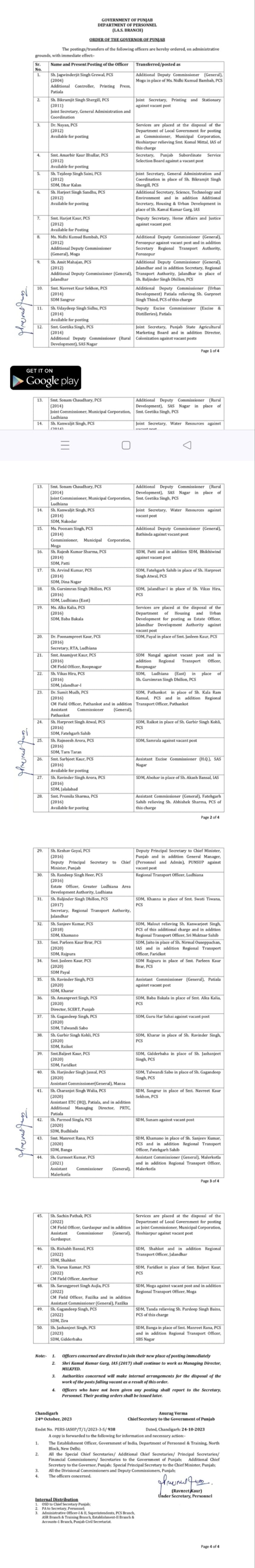 Posted inਪੰਜਾਬ ਪੀ ਸੀ ਐਸ ਅਫਸਰਾਂ ਦੇ ਤਬਾਦਲੇ Posted by worldpunjabitimes October 24, 2023No Comments ਚੰਡੀਗੜ 24 ਅਕਤੂਬਰ ( ਨਵਜੋਤ ਢੀਂਡਸਾ/ ਵਰਲਡ ਪੰਜਾਬੀ ਟਾਈਮਜ਼ ) ਪੰਜਾਬ ਸਰਕਾਰ ਨੇ ਅੱਜ 50 ਪੀ ਸੀ ਐਸ ਅਫਸਰਾਂ ਦੇ ਤਬਾਦਲੇ ਕੀਤੇ ਹਨ। ਇਸ ਸਬੰਧੀ ਸੂਚੀ ਨਾਲ ਦੇਖੀ ਜਾ ਸਕਦੀ ਹੈ । worldpunjabitimes View All Posts Post navigation Previous Post ਪੰਜਾਬੀ ਸਾਹਿਤ ਸਭਾ ਭੈਣੀ ਸਾਹਿਬ ਦੀ ਮਹੀਨਾਵਾਰ ਮੀਟਿੰਗ ਹੋਈNext Postਕਾਵਿ ਸੰਗ੍ਰਹਿ ‘ਵੜੈਚ ਦੇ ਵਿਅੰਗ’ ਸਮਾਜਿਕ ਕੁਰੀਤੀਆਂ ਦੇ ਮਾਰਦੇ ਡੰਗ