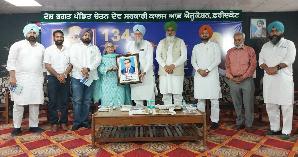 ਮਹਾਨ ਯੁਗ ਪੁਰਸ਼ ਅਤੇ ਭਾਰਤੀ ਸੰਵਿਧਾਨ ਦੇ ਨਿਰਮਾਤਾ, ਪ੍ਰਸਿੱਧ ਸਮਾਜ ਸੁਧਾਰਕ ਡਾਕਟਰ ਭੀਮ ਰਾਓ ਅੰਬੇਦਕਰ ਦੀ 134ਵੀਂ ਜਨਮ ਸ਼ਤਾਬਦੀ ਦੇ ਸਬੰਧ ਵਿੱਚ ਭਗਤ ਚੇਤਨ ਦੇਵ ਸਰਕਾਰੀ ਬੀ.ਐਡ ਕਾਲਜ ਫਰੀਦਕੋਟ ਵਿਖੇ ਜ਼ਿਲ੍ਹਾ ਪੱਧਰੀ ਸਮਾਗਮ ਦਾ ਆਯੋਜਨ ਕੀਤਾ ਗਿਆ। ਇਸ ਸਮਾਗਮ ਵਿੱਚ ਪੰਜਾਬ ਵਿਧਾਨ ਸਭਾ ਦੇ ਸਪੀਕਰ ਕੁਲਤਾਰ ਸਿੰਘ ਸੰਧਵਾਂ ਨੇ ਮੁੱਖ ਮਹਿਮਾਨ ਵਜੋਂ ਸ਼ਿਰਕਤ ਕੀਤੀ ਜਦਕਿ ਵਿਧਾਇਕ ਫਰੀਦਕੋਟ ਗੁਰਦਿੱਤ ਸਿੰਘ ਸੇਖੋਂ ਵਿਸ਼ੇਸ਼ ਮਹਿਮਾਨ ਵਜੋਂ ਸ਼ਾਮਿਲ ਹੋਏ। ਇਸ ਮੌਕੇ ਡਿਪਟੀ ਕਮਿਸ਼ਨਰ ਮੈਡਮ ਪੂਨਮਦੀਪ ਕੌਰ ਅਤੇ ਐਸਐਸਪੀ ਡਾ. ਪ੍ਰਗਿਆ ਜੈਨ ਵੀ ਵਿਸ਼ੇਸ਼ ਤੌਰ ਤੇ ਹਾਜ਼ਰ ਸਨ। ਆਪਣੇ ਸੰਬੋਧਨ ਵਿੱਚ ਪੰਜਾਬ ਵਿਧਾਨ ਸਭਾ ਦੇ ਸਪੀਕਰ ਕੁਲਤਾਰ ਸਿੰਘ ਸੰਧਵਾਂ ਨੇ ਕਿਹਾ ਕਿ ਡਾਕਟਰ ਭੀਮ ਰਾਓ ਅੰਬੇਦਕਰ ਜੀ ਨੇ ਹਮੇਸ਼ਾ ਸਮਾਜ ਸੁਧਾਰ ਅਤੇ ਸਮਾਜ ਦੇ ਦੱਬੇ ਕੁਚਲੇ ਲੋਕਾਂ ਦੇ ਉਥਾਨ ਲਈ ਕੰਮ ਕੀਤਾ ਅਤੇ ਉਹਨਾਂ ਨੂੰ ਭਾਰਤ ਦਾ ਸੰਵਿਧਾਨ ਨਿਰਮਾਤਾ ਵੀ ਕਿਹਾ ਜਾਂਦਾ ਹੈ। ਉਹਨਾਂ ਕਿਹਾ ਕਿ ਪੰਜਾਬ ਵਿੱਚ ਆਮ ਆਦਮੀ ਪਾਰਟੀ ਦੀ ਸਰਕਾਰ ਨੇ ਆਪਣੀ ਸਥਾਪਤੀ ਮੌਕੇ ਹੀ ਜਿੱਥੇ ਸ਼ਹੀਦਾਂ ਨੂੰ ਮਾਣ ਸਤਿਕਾਰ ਦਿੱਤਾ ਉੱਥੇ ਸੰਵਿਧਾਨ ਨਿਰਮਾਤਾ ਡਾਕਟਰ ਭੀਮ ਰਾਓ ਅੰਬੇਡਕਰ ਤੇ ਸ਼ਹੀਦ ਭਗਤ ਸਿੰਘ ਦੀਆਂ ਫੋਟੋਆਂ ਹਰੇਕ ਸਰਕਾਰੀ ਦਫਤਰ ਵਿੱਚ ਲਗਾਈਆਂ ਤਾਂ ਜੋ ਲੋਕ ਉਨ੍ਹਾਂ ਤੋਂ ਪ੍ਰੇਰਨਾ ਲੈਣ। ਉਹਨਾਂ ਕਿਹਾ ਕਿ ਪੰਜਾਬ ਸਰਕਾਰ ਵੱਲੋਂ ਪਿਛਲੇ ਸਮੇਂ ਤੋਂ ਗਰੀਬ, ਪੱਛੜੇ ਵਰਗਾਂ ਦੀ ਬੰਦ ਪਈ ਸਕਾਲਰਸ਼ਿਪ ਤੇ ਹੋਰ ਸਕੀਮਾਂ ਨੂੰ ਵੀ ਮੁੜ ਤੋਂ ਸ਼ੁਰੂ ਕੀਤਾ ਗਿਆ ਹੈ ਤਾਂ ਜੋ ਇਸ ਵਰਗ ਦੇ ਬੱਚਿਆਂ ਨੂੰ ਇਸ ਦਾ ਵੱਧ ਤੋਂ ਵੱਧ ਲਾਭ ਮਿਲ ਸਕੇ। ਸਪੀਕਰ ਸਰਦਾਰ ਕੁਲਤਾਰ ਸਿੰਘ ਸੰਧਵਾਂ ਨੇ ਕਿਹਾ ਕਿ ਡਾਕਟਰ ਅੰਬੇਦਕਰ ਜੀ ਦੇਸ਼ ਦੀ ਏਕਤਾ ਅਤੇ ਅਖੰਡਤਾ ਦੇ ਪ੍ਰਤੀਕ ਸਨ ਤੇ ਪੰਜਾਬ ਸਰਕਾਰ ਨੇ ਇਹ ਤਹੀਆ ਕੀਤਾ ਹੈ ਕਿ ਉਹ ਡਾਕਟਰ ਅੰਬੇਦਕਰ ਜੀ ਦੀ ਸੋਚ ਨੂੰ ਅੱਗੇ ਲਿਜਾ ਕੇ ਦੇਸ਼ ਦੇ ਦੱਬੇ ਤੇ ਕੁਚਲੇ ਲੋਕਾਂ ਲਈ ਕੰਮ ਕਰਕੇ ਇਸ ਵਰਗ ਦੇ ਬੱਚਿਆਂ ਨੂੰ ਵੱਧ ਤੋਂ ਵੱਧ ਸਿੱਖਿਅਤ ਕਰਨਗੇ ਤਾਂ ਜੋ ਉਹ ਸਮਾਜ ਵਿੱਚ ਸਨਮਾਨਜਨਕ ਸਥਾਨ ਪ੍ਰਾਪਤ ਕਰ ਸਕਣ। ਉਹਨਾਂ ਕਿਹਾ ਕਿ ਪੰਜਾਬ ਸਰਕਾਰ ਵੱਲੋਂ ਆਪਣੇ ਮੰਤਰੀ ਮੰਡਲ ਵਿੱਚ ਛੇ ਅਨਸੂਚਿਤ ਜਾਤੀ ਭਾਈਚਾਰੇ ਦੇ ਮੰਤਰੀਆਂ ਨੂੰ ਸ਼ਾਮਿਲ ਕਰਕੇ ਇਤਿਹਾਸ ਕਾਇਮ ਕੀਤਾ ਹੈ ਤੇ ਇਸ ਵਰਗ ਨੂੰ ਬਣਦੀ ਨੁਮਾਇੰਦਗੀ ਦਿੱਤੀ ਹੈ। ਉਹਨਾਂ ਇਹ ਵੀ ਕਿਹਾ ਕਿ ਏਜੀ ਦਫਤਰ ਵਿੱਚ ਵੀ ਰਾਖਵੇਂਕਰਨ ਨੂੰ ਲਾਗੂ ਕੀਤਾ ਗਿਆ ਹੈ ਅਤੇ ਗਰੀਬ ਵਰਗ ਦੀ ਭਲਾਈ ਲਈ ਹੋਰ ਸਹੂਲਤਾਂ ਵੀ ਸ਼ੁਰੂ ਕੀਤੀਆਂ ਗਈਆਂ ਹਨ। ਵਿਧਾਇਕ ਗੁਰਦਿੱਤ ਸਿੰਘ ਸੇਖੋ ਨੇ ਆਪਣੇ ਸੰਬੋਧਨ ਵਿੱਚ ਡਾਕਟਰ ਭੀਮ ਰਾਓ ਅੰਬੇਦਕਰ ਦੇ ਜਨਮ ਦਿਨ ਤੇ ਵਧਾਈ ਦਿੰਦਿਆਂ ਕਿਹਾ ਕਿ ਉਹਨਾਂ ਨੇ ਦੇਸ਼ ਦੇ ਵੱਖ-ਵੱਖ ਫਿਰਕਿਆਂ ,ਜਾਤਾਂ -ਧਰਮਾਂ ਨੂੰ ਸੰਵਿਧਾਨ ਰਾਹੀਂ ਬਰਾਬਰਤਾ ਦਾ ਅਧਿਕਾਰ ਦੇ ਕੇ ਇਕ ਲੜੀ ਵਿੱਚ ਪਰੋਇਆ ਤੇ ਸਾਰੇ ਵਰਗਾਂ ਦੇ ਅਧਿਕਾਰ ਸੁਰੱਖਿਤ ਕੀਤੇ ।ਉਹਨਾਂ ਕਿਹਾ ਕਿ ਸਾਨੂੰ ਡਾਕਟਰ ਸਾਹਿਬ ਦੀਆਂ ਸਿੱਖਿਆਵਾਂ ਤੇ ਚੱਲ ਕੇ ਗਰੀਬ ਵਰਗ ਦੀ ਤਰੱਕੀ ਤੇ ਵਿਕਾਸ ਲਈ ਆਪਣਾ ਯੋਗਦਾਨ ਪਾਉਣਾ ਚਾਹੀਦਾ ਹੈ ਤਾਂ ਜੋ ਵੱਧ ਤੋਂ ਵੱਧ ਲੋਕਾਂ ਨੂੰ ਸਿੱਖਿਅਤ ਕੀਤਾ ਜਾ ਸਕੇ। ਇਸ ਮੌਕੇ ਡਿਪਟੀ ਕਮਿਸ਼ਨਰ ਮੈਡਮ ਪੂਨਮਦੀਪ ਕੌਰ ਨੇ ਸੰਵਿਧਾਨ ਨਿਰਮਾਤਾ ਡਾਕਟਰ ਅੰਬੇਦਕਰ ਜੀ ਨੂੰ ਸ਼ਰਧਾ ਦੇ ਫੁੱਲ ਭੇਟ ਕਰਦਿਆਂ ਉਹਨਾਂ ਦੇ ਜੀਵਨ ,ਸੰਘਰਸ਼ ਤੇ ਸੰਵਿਧਾਨ ਨੂੰ ਦੇਣ ਸਬੰਧੀ ਸੰਖੇਪ ਵਿੱਚ ਵਿਚਾਰ ਸਾਂਝੇ ਕੀਤ