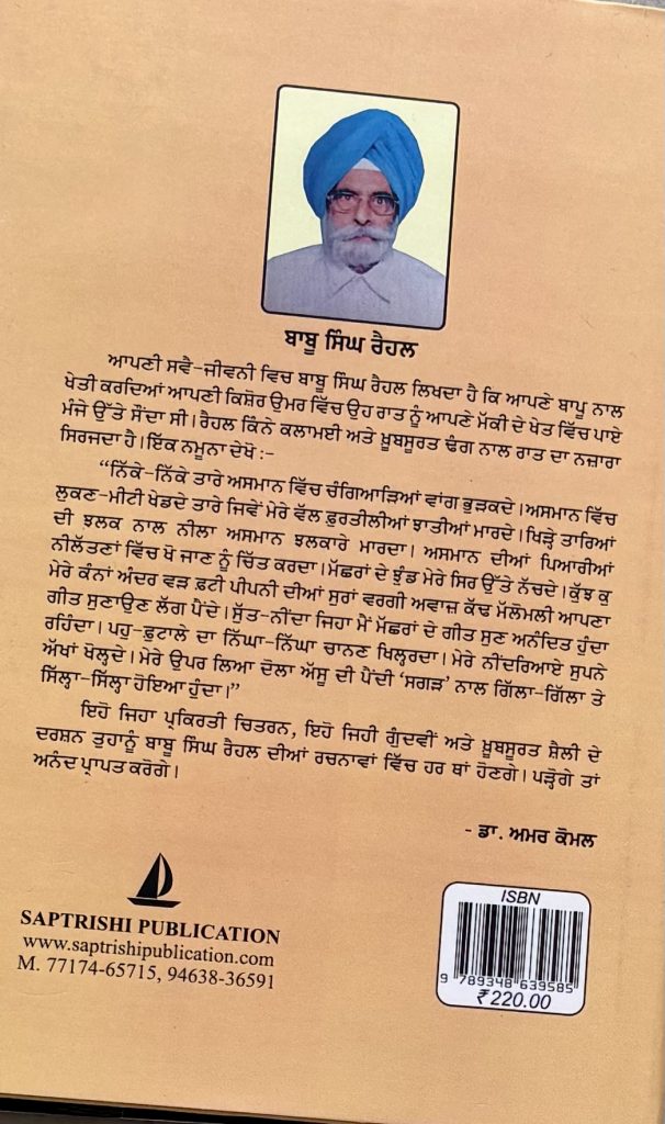 ਸੰਪਰਕ : ਬਾਬੂ ਸਿੰਘ ਰੈਹਲ 6284121600