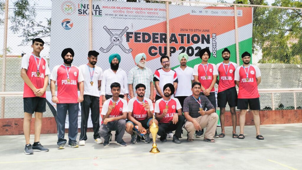 ਰੋਲਰ ਸਕੇਟਿੰਗ ਫੈਡਰੇਸ਼ਨ ਆਫ ਇੰਡੀਆ ਵੱਲੋਂ 25 ਜੂਨ 2024 ਤੋਂ 27 ਜੂਨ 2024 ਤੱਕ ਜੋਧਪੁਰ ਰਾਜਸਥਾਨ ਵਿਖੇ ਸੀਨੀਅਰ ਲੜਕੇ ਅਤੇ ਸੀਨੀਅਰ ਲੜਕੀਆਂ ਰੋਲਰ ਸਕੇਟਿੰਗ ਹਾਕੀ ਫੈਡਰੇਸ਼ਨ ਕੱਪ ਕਰਵਾਇਆ ਗਿਆ | ਇਸ ਮੁਕਾਬਲੇ ਵਿੱਚ ਭਾਰਤ ਦੇ ਵੱਖ ਵੱਖ ਰਾਜਾਂ ਨੇ ਭਾਗ ਲਿਆ | ਪੰਜਾਬ ਵੱਲੋਂ ਸੀਨੀਅਰ ਲੜਕੇ ਅਤੇ ਸੀਨੀਅਰ ਲੜਕੀਆਂ ਦੀ ਟੀਮ ਨੇ ਭਾਗ ਲਿਆ | ਇਸ ਮੁਕਾਬਲੇ ਵਿੱਚ ਪੰਜਾਬ ਵੱਲੋਂ ਸੀਨੀਅਰ ਲੜਕੀਆਂ ਦੀ ਟੀਮ ਨੇ ਕਾਂਸੀ ਦਾ ਤਮਗਾ ਹਾਸਲ ਕੀਤਾ ਅਤੇ ਸੀਨੀਅਰ ਲੜਕਿਆਂ ਦੀ ਟੀਮ ਨੇ ਸੋਨੇ ਦਾ ਤਮਗਾ ਹਾਸਲ ਕੀਤਾ | ਇਹਨਾਂ ਦੋਨਾਂ ਟੀਮਾਂ ਵਿੱਚ ਵਾਰ ਹੀਰੋਜ਼ ਸਟੇਡੀਅਮ ਸੰਗਰੂਰ ਦੇ ਦਕਸ਼ਨੂਰ ਸਿੰਘ ਸਿੱਧੂ, ਪ੍ਰਣਵ ਮੰਡੋਰਾ, ਅਰਜੁਨ ਸਿੰਘ, ਗੁਰਸੇਵਕ ਸਿੰਘ ਚੀਮਾ, ਤਨਿਸ਼ ਗੋਇਲ, ਗੁਰਸ਼ੇਰ ਸਿੰਘ ਰਾਓ ਨੇ ਭਾਗ ਲਿਆ | ਕੁੜੀਆਂ ਦੀ ਟੀਮ ਵਿੱਚ ਮਨਸੀਰਤ ਕੌਰ ਸਿੱਧੂ, ਚੈਰਲ ਗਰਗ, ਜਪਨਜੋਤ ਕੌਰ ਰਾਓ, ਸੁਕਰੀਤੀ, ਕਾਸ਼ਵੀ ਗੁਪਤਾ ਨੇ ਭਾਗ ਲਿਆ | ਇਹ ਸਾਰੇ ਖਿਡਾਰੀ ਡੀ ਐਸ ਓ ਨਵਦੀਪ ਸਿੰਘ ਔਜਲਾ ਜੀ ਕੋਲ ਪ੍ਰੈਕਟਿਸ ਕਰਦੇ ਹਨ | ਕੋਚ ਨਵਦੀਪ ਸਿੰਘ ਔਜਲਾ ਜੀ ਦੁਆਰਾ ਕਰਵਾਈ ਜਾਂਦੀ ਸਖਤ ਮਿਹਨਤ ਸਦਕਾ ਹੀ ਅੱਜ ਇਹ ਖਿਡਾਰੀ ਇਸ ਮੁਕਾਮ ਤੱਕ ਪਹੁੰਚੇ ਹਨ | ਇਹਨਾ ਖਿਡਾਰੀਆਂ ਵਿੱਚੋਂ ਜਿਆਦਾਤਰ ਖਿਡਾਰੀ ਇੰਟਰਨੈਸ਼ਨਲ ਪੱਧਰ ਤੇ ਮੈਡਲ ਪ੍ਰਾਪਤ ਕਰ ਚੁੱਕੇ ਹਨ | ਸੰਗਰੂਰ ਨੂੰ ਇਹਨਾਂ ਖਿਡਾਰੀਆਂ ਅਤੇ ਇਹਨਾਂ ਦੇ ਕੋਚ ਨਵਦੀਪ ਸਿੰਘ ਔਜਲਾ ਜੀ ਉੱਪਰ ਬਹੁਤ ਮਾਣ ਹੈ |