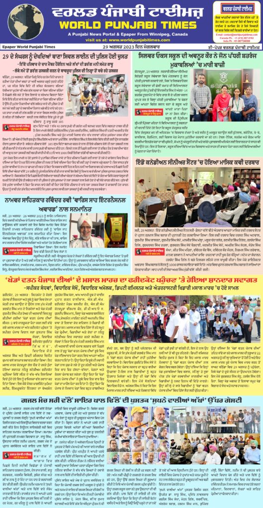 Posted inਈ-ਪੇਪਰ ਵਰਲਡ ਪੰਜਾਬੀ ਟਾਈਮਜ਼ ਈ ਪੇਪਰ Posted by worldpunjabitimes October 20, 2023No Comments worldpunjabitimes View All Posts Post navigation Previous Post ਪਰਵਾਸੀ ਸ਼ਾਇਰ ਭੂਪਿੰਦਰ ਸਿੰਘ ਸੱਗੂ ਅਤੇ ਗੁਰਸ਼ਰਨ ਸਿੰਘ ਅਜੀਬ ਦੀਆਂ ਪੁਸਤਕਾਂ ਹੋਈਆਂ ਲੋਕ ਅਰਪਣNext Post45ਵੇਂ ਪ੍ਰੋਃ ਮੋਹਨ ਸਿੰਘ ਯਾਦਗਾਰੀ ਅੰਤਰ ਰਾਸ਼ਟਰੀ ਮੇਲੇ ਦੀਆਂ ਸਭ ਤਿਆਰੀਆਂ ਮੁਕੰਮਲ- ਗੁਰਨਾਮ ਸਿੰਘ ਧਾਲੀਵਾਲ – ਲਵਲੀ