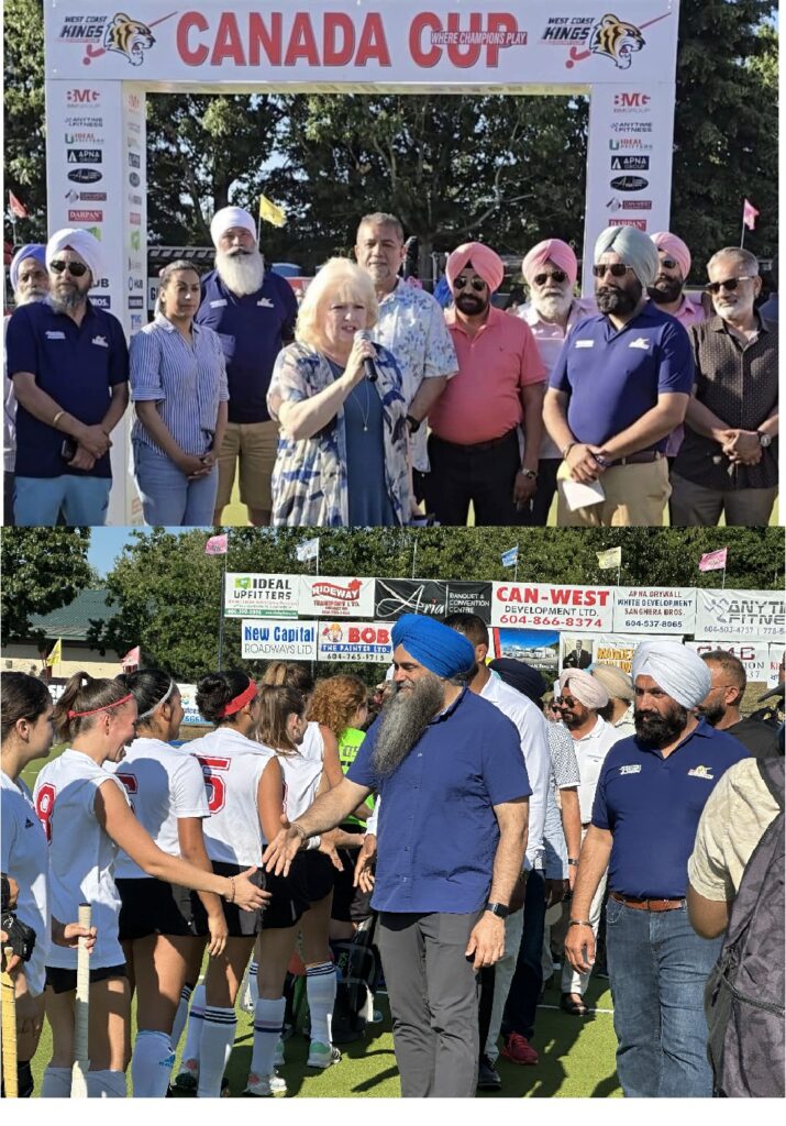 ਵੈਸਟ ਕੋਸਟ ਕਿੰਗਜ਼ ਫੀਲਡ ਹਾਕੀ ਸੋਸਾਇਟੀ ਵੱਲੋਂ ਹਰਸਾਲ ਸਰੀ ਵਿਚ ਕਰਵਾਇਆ ਜਾਣ ਵਾਲਾ ਕੈਨੇਡਾ ਕੱਪ ਫੀਲਡ ਹਾਕੀ ਟੂਰਨਾਮੈਂਟ ਉੱਤਰੀ ਅਮਰੀਕਾ ਵਿੱਚ ਵਿਸ਼ੇਸ਼ ਸਥਾਨ ਬਣਾ ਚੁੱਕਿਆ ਹੈ। ਟਮੈਨਵਸ ਪਾਰਕ ਸਰੀ ਵਿਚ 18 ਜੁਲਾਈ ਤੋਂ ਸ਼ੁਰੂ ਹੋਏ ਇਸ ਚਾਰ ਦਿਨਾਂ ਟੂਰਨਾਮੈਂਟ ਦਾ ਰਸਮੀ ਉਦਘਾਟਨ ਸਰੀ ਸਿਟੀ ਦੀ ਮੇਅਰ ਬਰੈਂਡਾ ਲੌਕ, ਮੈਂਬਰ ਪਾਰਲੀਮੈਂਟ ਸੁਖ ਧਾਲੀਵਾਲ ਅਤੇ ਮੈਂਬਰ ਪਾਰਲੀਮੈਂਟ ਰਣਦੀਪ ਸਿੰਘ ਸਰਾਏ ਨੇ ਕੀਤਾ। ਇਸ ਮੌਕੇ ਕੌਂਸਲਰ ਹੈਰੀ ਬੈਂਸ, ਕੌਂਸਲਰ ਪ੍ਰਦੀਪ ਕੂਨਰ, ਲਿੰਡਾ ਐਨਿਸ ਤੇ ਹੋਰ ਕਈ ਸ਼ਖ਼ਸੀਅਤਾਂ ਹਾਜ਼ਰ ਸਨ। ਇਨ੍ਹਾਂ ਮਹਿਮਾਨਾਂ ਨੇ ਟੂਰਨਾਮੈਂਟ ਦੇ ਪ੍ਰਬੰਧਕਾਂ ਦੀ ਸ਼ਲਾਘਾ ਕੀਤੀ ਅਤੇ ਖਿਡਾਰੀਆਂ ਨੂੰ ਅਸ਼ੀਰਵਾਦ ਦਿੱਤਾ।