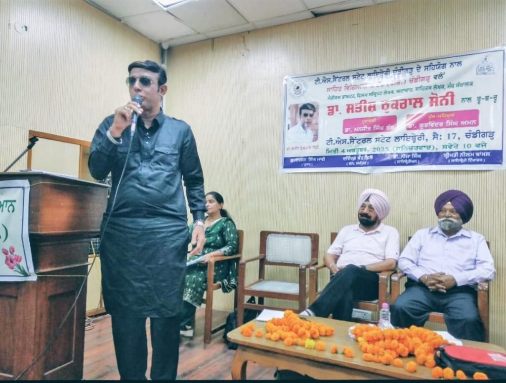 ਸਾਹਿਤ ਵਿਗਿਆਨ ਕੇਂਦਰ ਚੰਡੀਗੜ੍ਹ ਵੱਲੋਂ ਟੀ.ਐੱਸ.ਸੈਂਟਰਲ ਸਟੇਟ ਲਾਇਬ੍ਰੇਰੀ ਸੈਕਟਰ 17 ਚੰਡੀਗੜ੍ਹ ਵਿਖੇ ਡਾ. ਸਤੀਸ਼ ਕੁਮਾਰ ਠੁਕਰਾਲ ਸੋਨੀ(ਸਾਹਿਤਕਾਰ,ਅਦਾਕਾਰ,ਮੰਚ ਸੰਚਾਲਕ ,ਫਿਲਮ ਸਕ੍ਰਿਪਟ ਲੇਖਕ ਅਤੇ ਮੈਡੀਕਲ ਡਾਕਟਰ) ਦਾ ਰੂ-ਬ-ਰੂ ਕਰਵਾਇਆ ਗਿਆ । ਪ੍ਰਧਾਨਗੀ ਮੰਡਲ ਵਿੱਚ ਡਾ. ਸਤੀਸ਼ ਠੁਕਰਾਲ ਸੋਨੀ,ਡਾ. ਮਨਜੀਤ ਬੱਲ,ਡਾ. ਗੁਰਵਿੰਦਰ ਅਮਨ,ਗੁਰਦਰਸ਼ਨ ਸਿੰਘ ਮਾਵੀ ਤੇ ਦਵਿੰਦਰ ਕੌਰ ਢਿੱਲੋਂ ਸ਼ੁਸ਼ੋਭਿਤ ਸਨ। ਸੰਸਥਾ ਦੇ ਪ੍ਰਧਾਨ ਗੁਰਦਰਸ਼ਨ ਸਿੰਘ ਮਾਵੀ ਨੇ ਆਏ ਹੋਏ ਸਾਰੇ ਮਹਿਮਾਨਾਂ ਨੂੰ ਜੀ ਆਇਆਂ ਕਿਹਾ ਤੇ ਇਸ ਸਮਾਗਮ ਦੀ ਰੂਪ-ਰੇਖਾ ਬਾਰੇ ਚਾਨਣਾ ਪਾਇਆ। ਸੀਨੀਅਰ ਮੀਤ ਪ੍ਰਧਾਨ ਪਰਮਜੀਤ ਕੌਰ ਪਰਮ ਨੇ ਡਾ. ਸਤੀਸ਼ ਠੁਕਰਾਲ ਸੋਨੀ ਦੇ ਜੀਵਨ ਅਤੇ ਉਹਨਾਂ ਦੀਆਂ ਲਿਖਤਾਂ ਬਾਰੇ ਸੰਖੇਪ ਜਾਣਕਾਰੀ ਦਿੱਤੀ।