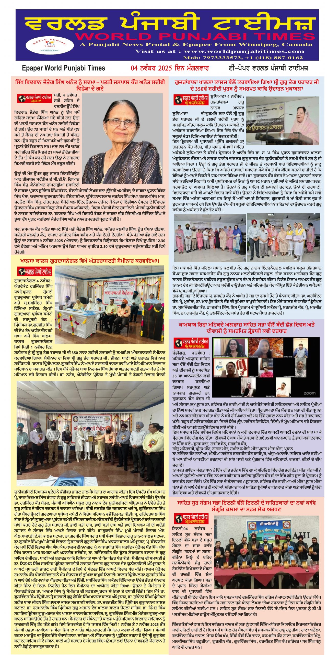 Posted inਈ-ਪੇਪਰ World Punjabi Times-04.11.2025 04.11.25Download Posted by worldpunjabitimes November 4, 2025