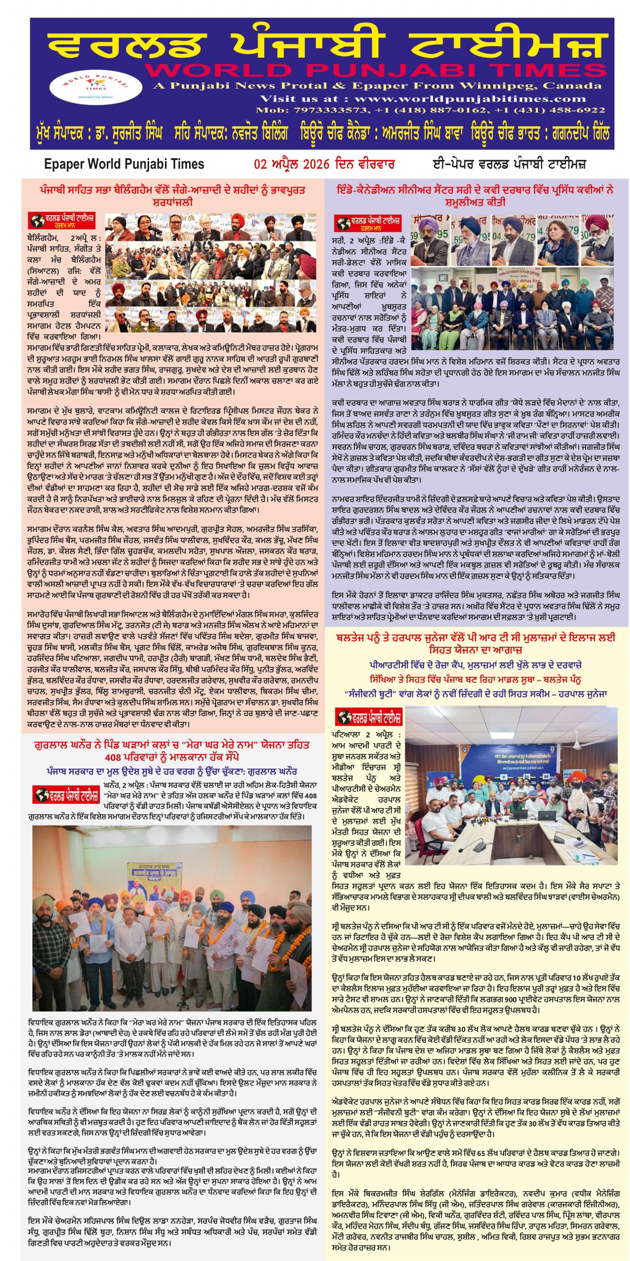 ਕੋਟਕਪੂਰਾ, 28 ਅਕਤੂਬਰ (ਟਿੰਕੂ ਕੁਮਾਰ/ਵਰਲਡ ਪੰਜਾਬੀ ਟਾਈਮਜ਼ ) ਭਾਰਤੀ ਕਿਸਾਨ ਯੂਨੀਅਨ ਏਕਤਾ ਸਿੱਧੂਪੁਰ ਦੇ ਸੂਬਾ ਪ੍ਰਧਾਨ ਸਰਦਾਰ ਜਗਜੀਤ ਸਿੰਘ ਡੱਲੇਵਾਲ ਨੇ ਪ੍ਰੈੱਸ ਨੋਟ ਜਾਰੀ ਕਰਦੇ ਹੋਏ ਆਖਿਆ ਕਿ ਇੱਕ ਗੁਰਸਿੱਖ ਧੀ…