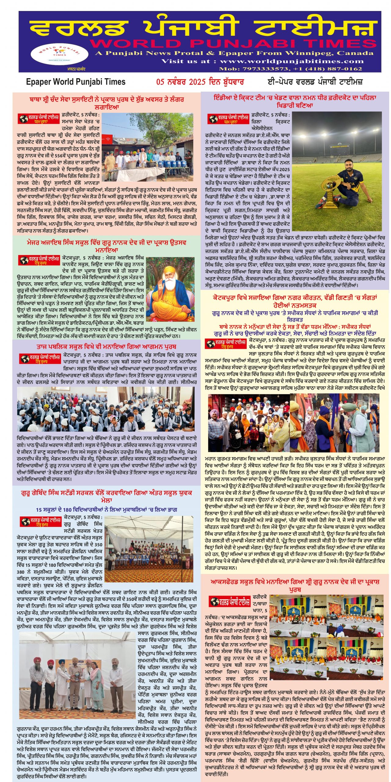 ਸਰੀ, 2 ਨਵੰਬਰ (ਹਰਦਮ ਮਾਨ/ਵਰਲਡ ਪੰਜਾਬੀ ਟਾਈਮਜ਼) ਗਿਆਨੀ ਗੁਰਦਿੱਤ ਸਿੰਘ ਦੀ ’ਮੇਰਾ ਪਿੰਡ’ ਪੁਸਤਕ ਦਾ ਅਨੁਵਾਦ 24 ਭਾਰਤੀ ਭਾਸ਼ਾਵਾਂ ਵਿੱਚ ਕੀਤਾ ਜਾਵੇਗਾ। ਇਹ ਐਲਾਨ ਚੰਡੀਗੜ੍ਹ ਸਾਹਿਤਕ ਅਕਾਦਮੀ ਵੱਲੋਂ ਪੀਪਲਜ਼ ਕਨਵੈਨਸ਼ਨ ਸੈਂਟਰ ਚੰਡੀਗੜ੍ਹ ਵਿਖੇ…
