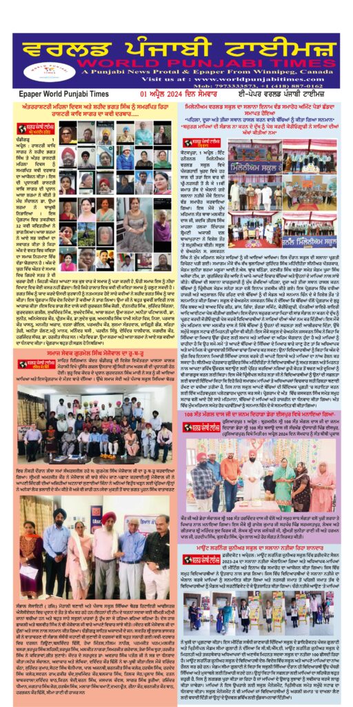 Posted inਈ-ਪੇਪਰ World Punjabi Times-01.04.2024 Posted by worldpunjabitimes April 1, 2024No Comments 01.04.24Download worldpunjabitimes View All Posts Post navigation Previous Post ਲੋਕ ਸੰਗੀਤ ਦਾ ਬੁਲੰਦ ਦਰਵਾਜ਼ਾ ਸੀ ਸ਼ੌਕਤ ਅਲੀ…Next Postਵੰਨ – ਸੁਵੰਨੇ ਖੇਤਰੀ ਸੱਭਿਆਚਾਰਾਂ ਦੀ ਸਲਾਮਤੀ ਲਈ ਪੰਜਾਬੀ ਲੇਖਕ ਪਿੰਡਾਂ ਵਿੱਚ ਵਧੇਰੇ ਸਾਹਿੱਤਕ ਸਰਗਰਮੀਆਂ ਕਰਨ- ਡਾ. ਵਰਿਆਮ ਸਿੰਘ ਸੰਧੂ