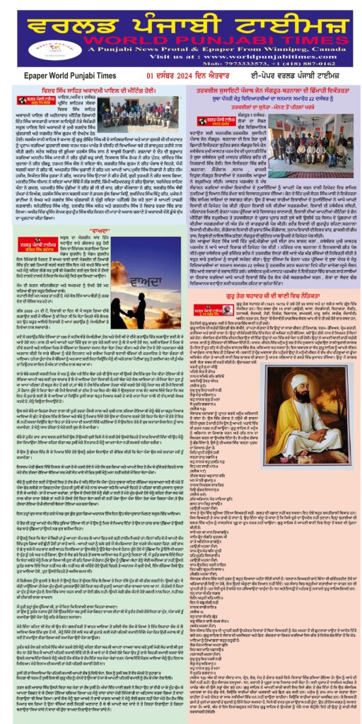 Posted inਈ-ਪੇਪਰ World Punjabi Times-01.12.2024 Posted by worldpunjabitimes December 1, 2024No Comments 01.12.2024Download worldpunjabitimes View All Posts Post navigation Previous Post ਗੁਰੂ ਤੇਗ ਬਹਾਦਰ ਜੀ ਦੀ ਬਾਣੀ ਵਿਚ ਨੈਤਿਕਤਾNext Postਗ਼ਜ਼ਲ ਮੰਚ ਸਰੀ ਵੱਲੋਂ 8 ਦਸੰਬਰ ਦੇ ਕਾਵਿ-ਸ਼ਾਰ ਪ੍ਰੋਗਰਾਮ ਦੀਆਂ ਤਿਆਰੀਆਂ ਸਬੰਧੀ ਮੀਟਿੰਗ