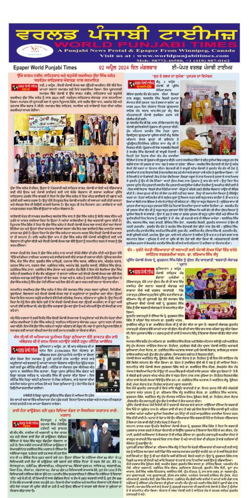 Posted inਈ-ਪੇਪਰ World Punjabi Times-02.04.2024 Posted by worldpunjabitimes April 2, 2024No Comments 02.04.24Download worldpunjabitimes View All Posts Post navigation Previous Post *ਆਪ’ ਸਰਕਾਰ ਦੇ ਲੋਕਪੱਖੀ ਕੰਮਾਂ ਦੇ ਮੱਦੇਨਜਰ ਕਰਮਜੀਤ ਅਨਮੋਲ ਦੀ ਜਿੱਤ ਯਕੀਨੀ : ਸੰਧਵਾਂNext Postਕਈ ਬੇਹਤਰੀਣ ,ਤਰੋਤਾਜ਼ਗੀ ਭਰੇ ਖੂਬਸੂਰਤ ਕੰਟੈਂਟ ਬੇਸਡ ਪੰਜਾਬੀ ਸਿਨੇਮਾ ਖੇਤਰ ਵਿੱਚ ਦਰਸ਼ਕਾਂ ਨੂੰ ਮਿਲਣਗੇ -ਬਾਲੀਵੁੱਡ ਨਿਰਦੇਸ਼ਕ ਵਰੁਣ ਬਿੱਲਾ
