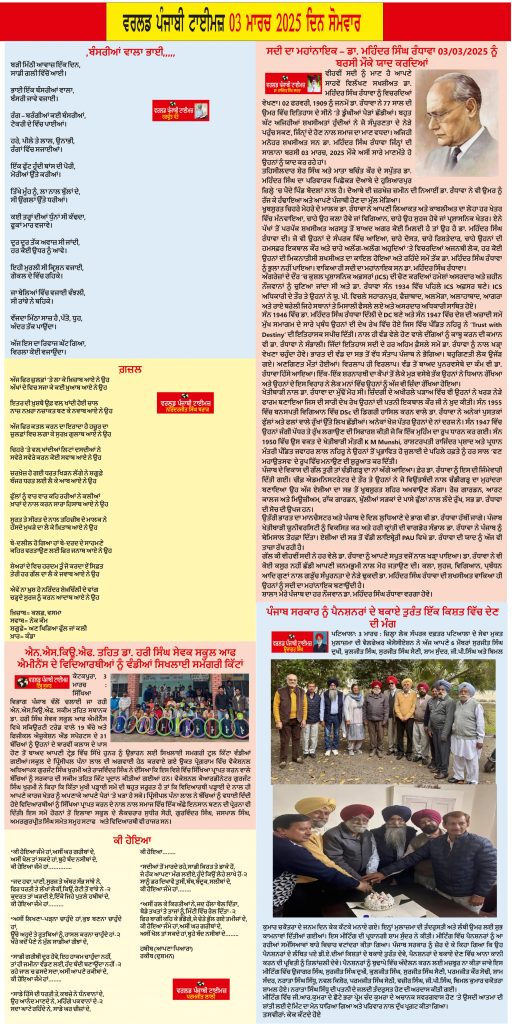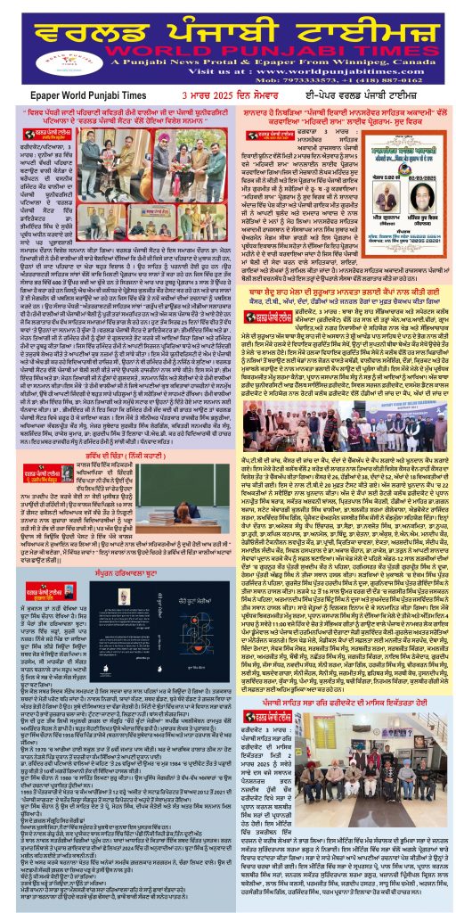Posted inਈ-ਪੇਪਰ World Punjabi Times-03.03.2025 Posted by worldpunjabitimes March 3, 2025No Comments 03.03.25Download worldpunjabitimes View All Posts Post navigation Previous Post 💥 ਕੀ ਹੋਇਆ 💥Next Postਨਾਮਵਰ ਪੰਜਾਬੀ ਗ਼ਜ਼ਲਕਾਰ ਕ੍ਰਿਸ਼ਨ ਭਨੋਟ ਦੇ ਸਦੀਵੀ ਵਿਛੋੜੇ ਉੱਪਰ ਦੁੱਖ ਦਾ ਪ੍ਰਗਟਾਵਾ