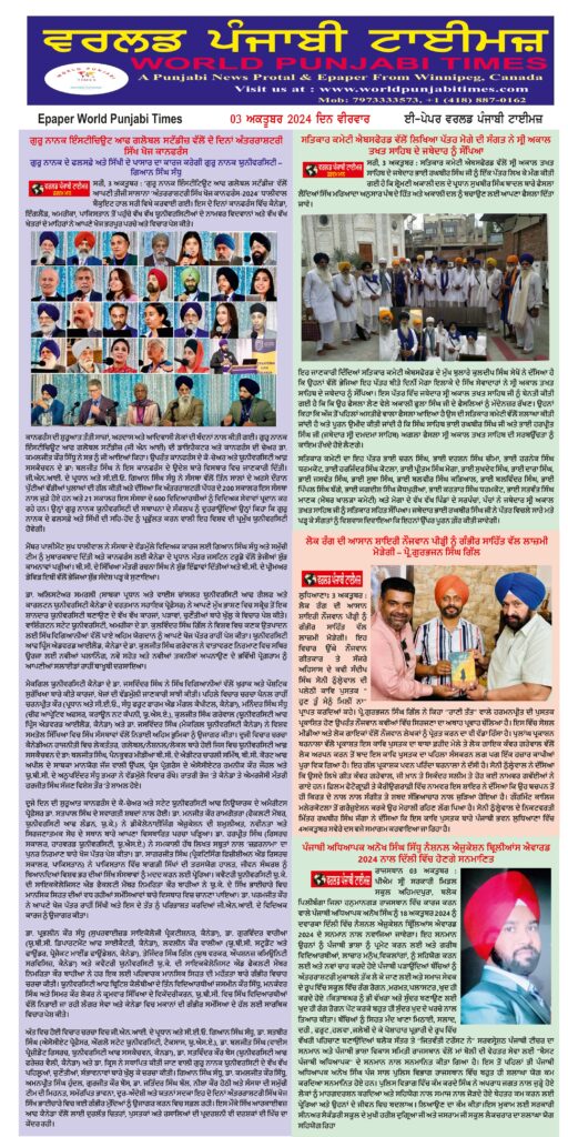 Posted inਈ-ਪੇਪਰ World Punjabi Times-03.10.2024 Posted by worldpunjabitimes October 3, 2024No Comments 03.10.2024Download worldpunjabitimes View All Posts Post navigation Previous Post ਪੰਜਾਬੀ ਅਧਿਆਪਕ ਅਨੋਖ ਸਿੰਘ ਸਿੱਧੂ ਨੈਸ਼ਨਲ ਐਜੂਕੇਸ਼ਨ ਬ੍ਰਿਲੀਆਂਸ ਐਵਾਰਡ 2024 ਨਾਲ ਦਿੱਲੀ ਵਿੱਚ ਹੋਣਗੇ ਸਨਮਾਣਿਤ*Next Postਦੇਵ ਹੇਅਰ ਤੇ ਇਜ਼ਾਬੇਲ ਮਾਰਟੀਨੇਜ਼ ਹੇਅਰ ਨੇ ਕਮਿਊਨਿਟੀ ਦੀ ਮਦਦ ਲਈ ਫੰਡ ਸ਼ੁਰੂ ਕੀਤਾ