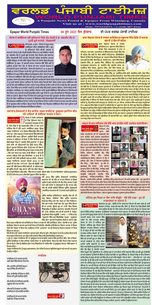 Posted inਈ-ਪੇਪਰ World Punjabi Times-04.06.2025 Posted by worldpunjabitimes June 4, 2025No Comments 04.06.2025Download worldpunjabitimes View All Posts Post navigation Previous Post ਮਹਿੰਦਰ ਸੂਦ ਵਿਰਕ ਦਾ ਚੌਥਾ ਕਾਵਿ ਸੰਗ੍ਰਹਿ ” ਸੱਚੇ ਸੁੱਚੇ ਹਰਫ਼ ” ਰੂਹ ਦੀ ਪਾਰਦਰਸ਼ਤਾ ਦਾ ਦਰਪਣ ਹੈ-Next Postਅੰਤਰਰਾਸ਼ਟਰੀ ਵਾਤਾਵਰਨ ਦਿਵਸ ਮੌਕੇ ਵਾਤਾਵਰਨ ਬਚਾਉਣ ਦਾ ਅਹਿਦ ਲਈਏ