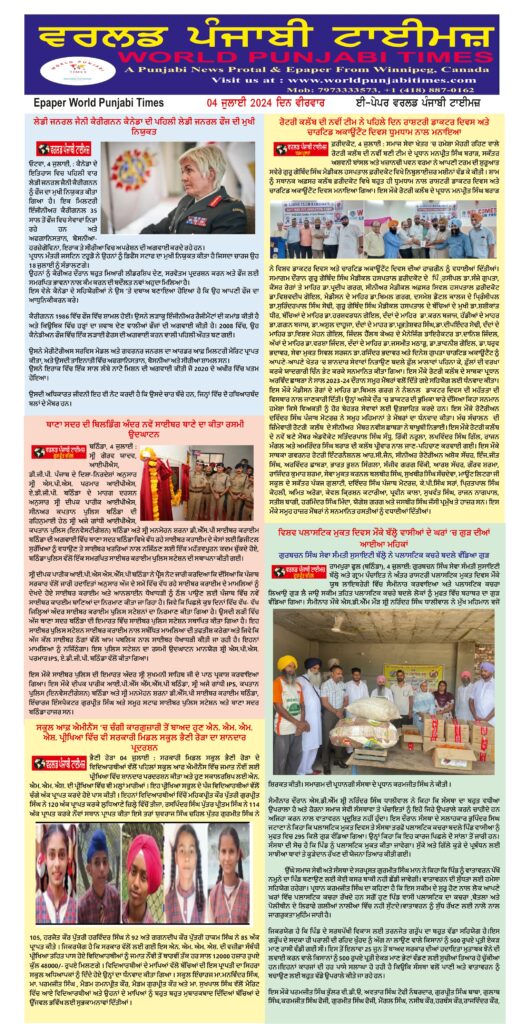 Posted inਈ-ਪੇਪਰ World Punjabi Times-04.07.2024 Posted by worldpunjabitimes July 4, 2024No Comments 04.07.24Download worldpunjabitimes View All Posts Post navigation Previous Post ਵਾਤਾਵਰਣ ਪ੍ਰੇਮੀ ਬੋਲੇ! ਇਨਸਾਨ ਅਤੇ ਦਰੱਖਤ ਦਾ ਆਪਸ ਵਿੱਚ ਗੂੜਾ ਸਬੰਧNext Postਅਹਿਮਦਗੜ੍ਹ ਵਿੱਚ ਸ਼੍ਰੀ ਮਦ ਭਾਗਵਤ ਕਥਾ ਦੀਆਂ ਤਿਆਰੀਆਂ ਮੁਕੰਮਲ।