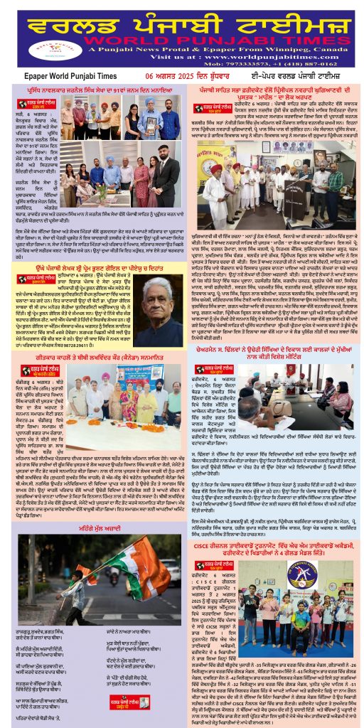 Posted inਈ-ਪੇਪਰ World Punjabi Times-06.08.2025 Posted by worldpunjabitimes August 6, 2025No Comments 06.08.25Download worldpunjabitimes View All Posts Post navigation Previous Post ਡੀ.ਟੀ.ਐੱਫ. ਬਲਾਕ ਕਮੇਟੀ ਦੀ ਮੀਟਿੰਗ ਦੌਰਾਨ ਪੈਨਸ਼ਨ ਲਾਗੂ ਕਰਵਾਉਣ ਸਬੰਧੀ ਵਿਚਾਰਾਂNext Postਬਚਪਨ ਇੰਗਲਿਸ਼ ਸਕੂਲ ਸੰਗਰੂਰ ਵਿਖੇ ਤਰਕਸ਼ੀਲ ਚੇਤਨਾ ਪਰਖ਼ ਪ੍ਰੀਖਿਆ ਦੀਆਂ 121 ਸਿਲੇਬਸ ਪੁਸਤਕਾਂ ਵੰਡੀਆਂ
