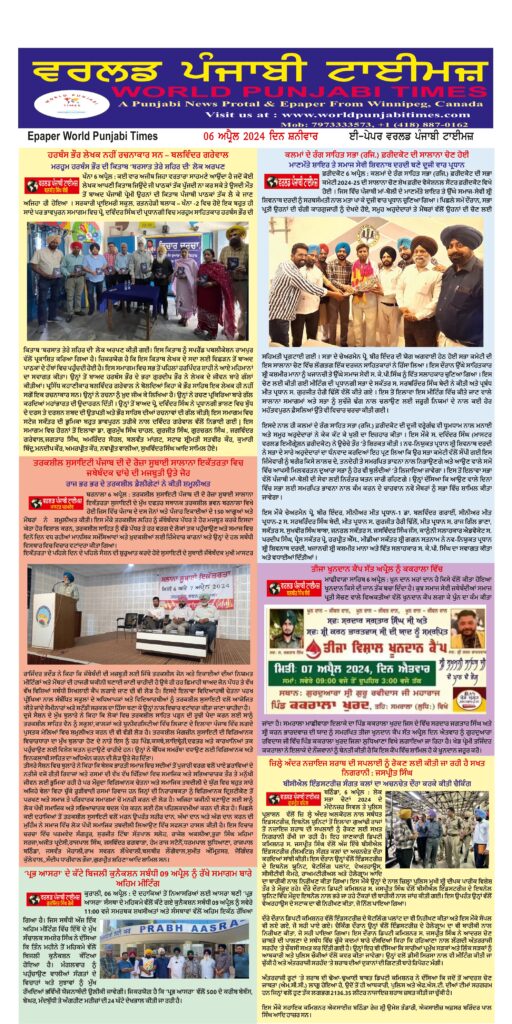 Posted inਈ-ਪੇਪਰ World Punjabi Times: 06.4.2024 Posted by worldpunjabitimes April 6, 2024No Comments 06.04.24Download worldpunjabitimes View All Posts Post navigation Previous Post ਕੁਲਤਾਰ ਸਿੰਘ ਸੰਧਵਾਂ ਨੇ ਪਿੰਡ ਮੌੜ ਵਿਖੇ ਵਰਕਰ ਮੀਟਿੰਗ ਜ਼ਰੀਏ ਲੋਕ ਸਭਾ ਚੋਣਾਂ ਦੀ ਮੁਹਿੰਮ ਭਖਾਈNext Postਭਿਆਨਕ ਸੜਕ ਹਾਦਸੇ ‘ਚ ਪੰਜਾਬ ਪੁਲਸ ਦੇ ACP ਤੇ ਗੰਨਮੈਨ ਦੀ ਹੋਈ ਦਰਦਾਨਕ ਮੌਤ
