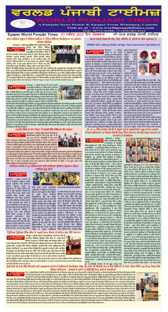 Posted inਈ-ਪੇਪਰ World Punjabi Times 07.11.2023 Posted by worldpunjabitimes November 7, 2023No Comments 07.11.2023Download worldpunjabitimes View All Posts Post navigation Previous Post ਜ਼ਿਲ੍ਹਾ ਪੱਧਰੀ ਪ੍ਰਾਇਮਰੀ ਟੂਰਨਾਮੈਂਟ ਵਿੱਚ ਠਾਠਾਂ ਮਾਰਦੇ ਇਕੱਠ ਨੇ ਧਾਰਿਆ ਖੇਡ ਮੇਲੇ ਦਾ ਰੂਪNext Postਪਰਾਲੀ ਦੀ ਸੰਭਾਲ ਕਰਨ ਦੇ ਮਹੱਤਵ ਪੂਰਨ ਨੁਕਤੇ