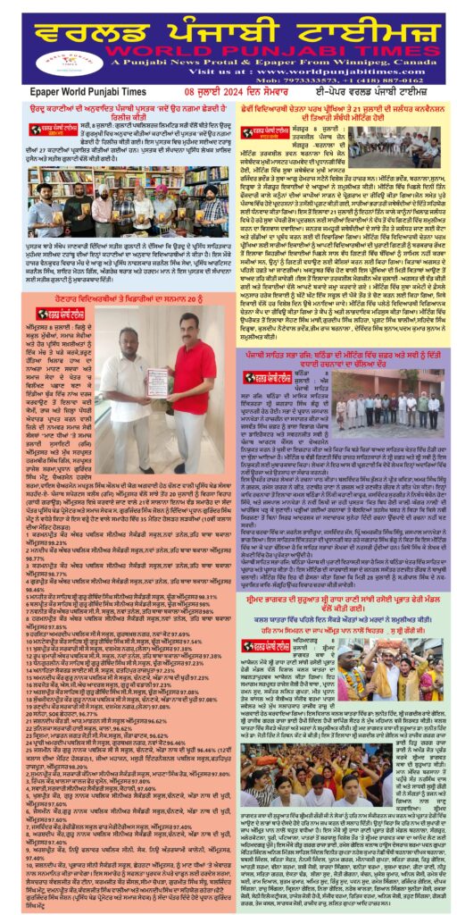Posted inਈ-ਪੇਪਰ Revised World Punjabi Times-08.07.2024 Posted by worldpunjabitimes July 8, 2024No Comments 08.07.24-2Download Share this:Post Share on WhatsApp (Opens in new window) WhatsApp worldpunjabitimes View All Posts Post navigation Previous Post ਅਮਰਨਾਥ ਯਾਤਰਾ ਲਈ ਜਾ ਰਹੇ ਜੱਥੇ ਉੱਤੇ ਲੁਟੇਰਿਆਂ ਵਲੋਂ ਹਮਲਾ, ਤਿੰਨ ਜਖਮੀNext Postਜ਼ਿਲ੍ਹਾ ਪ੍ਰਬੰਧਕੀ ਕੰਪਲੈਕਸ ਵਿਖੇ ਸਵਾਗਤ ਤੇ ਸਹਾਇਤਾ ਕੇਂਦਰ ਦੀ ਹੋਈ ਸ਼ੁਰੂਆਤ : ਜਸਪ੍ਰੀਤ ਸਿੰਘ