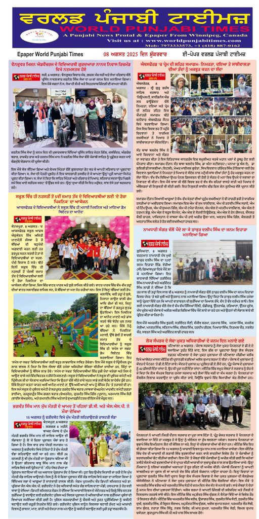 Posted inਈ-ਪੇਪਰ World Punjabi Times-08.08.2025 Posted by worldpunjabitimes August 8, 2025No Comments 08.08.25Download Share this:Post Click to share on WhatsApp (Opens in new window) WhatsApp worldpunjabitimes View All Posts Post navigation Previous Post ਭੈਣੇ ਸਾਵਣ ਆਇਆNext Postਰੱਖੜੀ