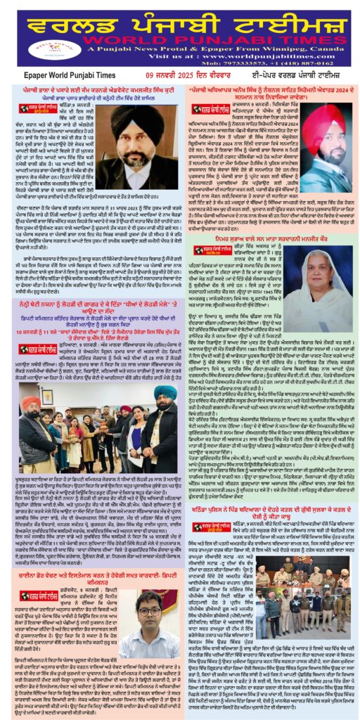 Posted inਈ-ਪੇਪਰ World Punjabi Times-09.01.2025 Posted by worldpunjabitimes January 9, 2025No Comments 09.01.2025Download worldpunjabitimes View All Posts Post navigation Previous Post ਬਠਿੰਡਾ ਪੁਲਿਸ ਨੇ ਪਿੰਡ ਬਦਿਆਲਾ ਦੇ ਦੋਹਰੇ ਕਤਲ ਦੀ ਗੁੱਥੀ ਸੁਲਝਾ ਕੇ ਕਤਲ ਦੇ ਦੋਸ਼ੀ ਨੂੰ ਕੀਤਾ ਕਾਬੂNext Postਪਿੰਡ ਦੀਪਗੜ੍ਹ ਵਿਖੇ ਮਾਤਾ ਗੁਰਦੇਵ ਕੌਰ ਢਿੱਲੋਂ ਨੂੰ ਵੱਖ-ਵੱਖ ਆਗੂਆਂ ਵੱਲੋਂ ਸ਼ਰਧਾਂਜਲੀਆਂ ਭੇਟ