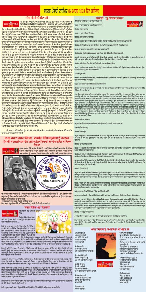 Posted inਈ-ਪੇਪਰ World Punjabi Times-09.03.2024 Posted by worldpunjabitimes March 9, 2024No Comments 09.03.24Download worldpunjabitimes View All Posts Post navigation Previous Post ਬੰਦਾ ਬਹਾਦਰ ਕਾਲਜ ਵਿਖੇ ਮਨਾਇਆ ਗਿਆ ‘ਵਿਸ਼ਵ ਮਹਿਲਾ ਦਿਵਸ’Next Postਕਿਸਾਨ ਮਜ਼ਦੂਰ ਮੋਰਚਾ , ਸੰਯੁਕਤ ਕਿਸਾਨ ਮੋਰਚਾ ( ਗੈਰਰਾਜਨੀਤਿਕ) ਦੇ ਸਦੇ ਤੇ ਤਰਨ ਤਾਰਨ ਰੇਲਵੇ ਸਟੇਸ਼ਨ ਤੇ ਰੋਕੀਆਂ ਗਈਆਂ ਰੇਲਾਂ, ਸਰਕਾਰ ਦੇਵੇ ਕਿਸਾਨਾਂ ਦੀਆਂ ਮੰਗਾਂ ਵੱਲ ਧਿਆਨ, ਨਹੀ ਤਾ ਸੰਘਰਸ਼ ਹੋਣਗੇ ਹੋਰ ਤੇਜ਼ :- ਪੰਨੂ , ਸਿੱਧਵਾਂ