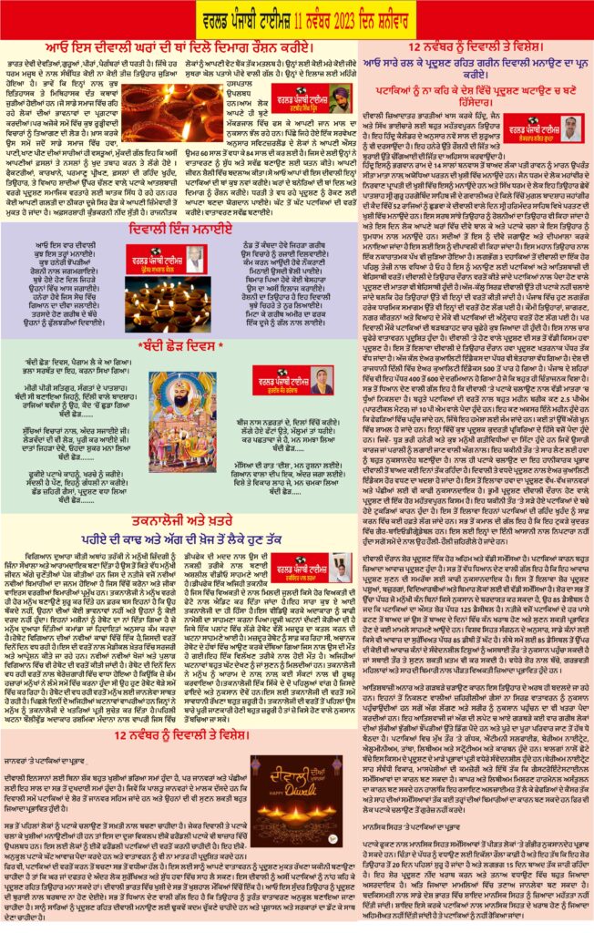 Posted inਈ-ਪੇਪਰ World Punjabi times-11.11.2023 Posted by worldpunjabitimes November 11, 2023No Comments 11.11.23Download worldpunjabitimes View All Posts Post navigation Previous Post ਸਪੀਕਰ ਸੰਧਵਾਂ ਪੱਤਰਕਾਰਾਂ ਅਤੇ ਸ਼ਹਿਰ ਦੇ ਮਿਹਨਤਕਸ਼ ਕਿਰਤੀ ਲੋਕਾਂ ਨਾਲ ਅੱਜ ਮਨਾਉਣਗੇ ਦੀਵਾਲੀ ਦਾ ਤਿਉਹਾਰ : ਮਨੀ ਧਾਲੀਵਾਲNext Postਦੀਵਾਲੀ/ ਬੰਦੀਛੋੜ ਦਿਵਸ