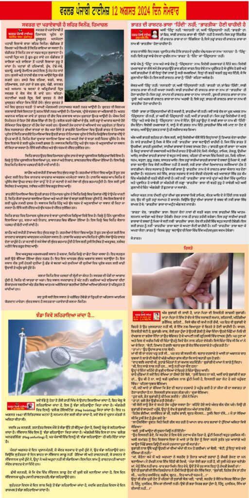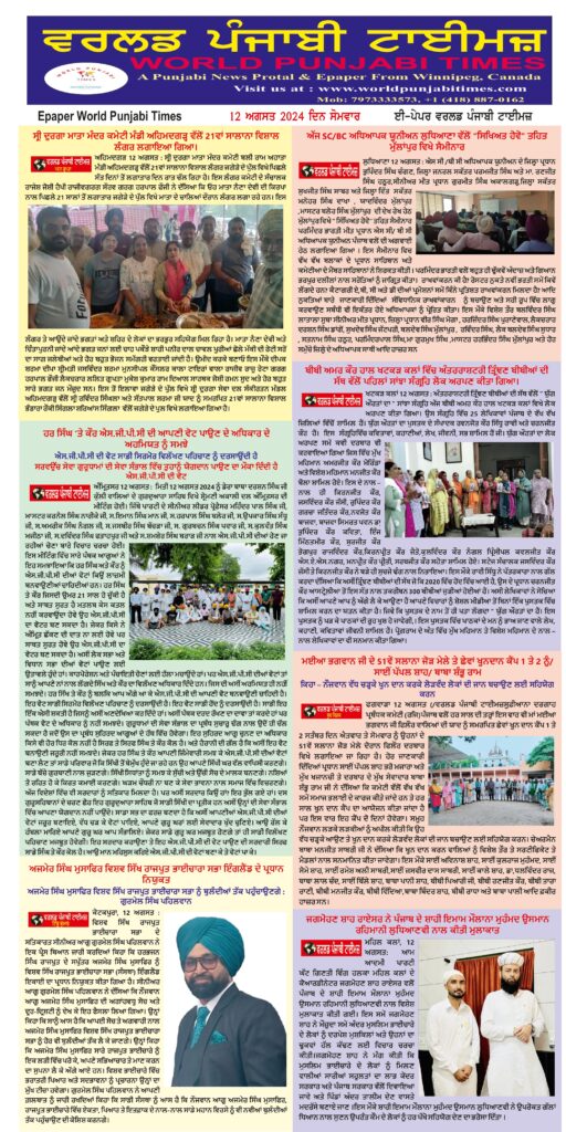 Posted inਈ-ਪੇਪਰ World Punjabi Times-12.08.2024 Posted by worldpunjabitimes August 12, 2024No Comments 12.08.24Download worldpunjabitimes View All Posts Post navigation Previous Post ਝੰਡਾ ਕਿਵੇਂ ਲਹਿਰਾਇਆ ਜਾਂਦਾ ਹੈ… Next Postਦਾ ਲਿਟਰੇਰੀ ਰਿਫਲੈਕਸ਼ਨਜ਼ ਵੱਲੋਂ ਅੰਤਰਾਰਸ਼ਟਰੀ ਵਿਦਿਆਰੀਆਂ ਦੇ ਮਸਲਿਆਂ ਤੇ ਸੈਮੀਨਾਰ-