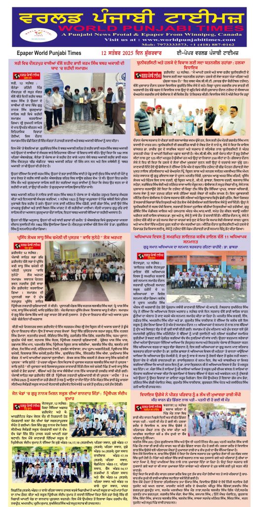 Posted inਈ-ਪੇਪਰ World Punjabi Times-12.09.2025 Posted by worldpunjabitimes September 12, 2025No Comments 12.09.25Download worldpunjabitimes View All Posts Post navigation Previous Post ਏ ਆਈ ਭਾਵ ਮਸ਼ੀਨੀ ਬੁੱਧੀ ਕੰਪਿਊਟਰ ਵਿਗਿਆਨ ਦੀ ਇੱਕ ਸ਼ਾਖਾ–ਤਰਕਸ਼ੀਲNext Postਹੜ੍ਹਾਂ ਦਾ ਪਾਣੀ…
