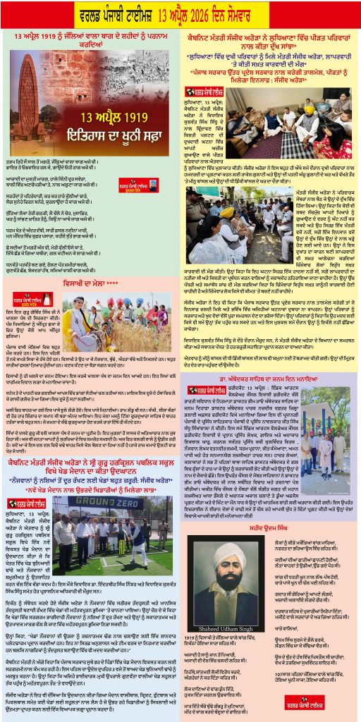 Posted inਈ-ਪੇਪਰ World Punjabi Times-13.04.2026 Posted by worldpunjabitimes April 13, 2026No Comments 13.04.26Download worldpunjabitimes View All Posts Post navigation Previous Post “ਚੜ੍ਹਿਆ ਚੇਤਰ” ਸਾਲਾਨਾ ਸਮਾਰੋਹ ਵਿੱਚ ਕਵਿੱਤਰੀ ਸੰਦੀਪ ਕੌਰ ਜਸਵਾਲ ਨੂੰ ਕਾਵਿ ਲੋਕ ਪੁਰਸਕਾਰ ਪ੍ਰਦਾਨਟNext Postਯੁੱਗ ਪੁਰਸ਼ ਡਾ. ਭੀਮ ਰਾਓ ਅੰਬੇਡਕਰ