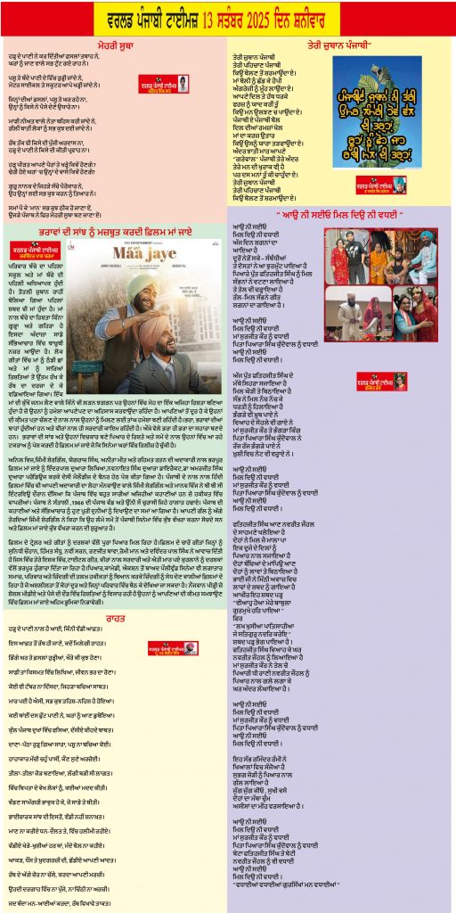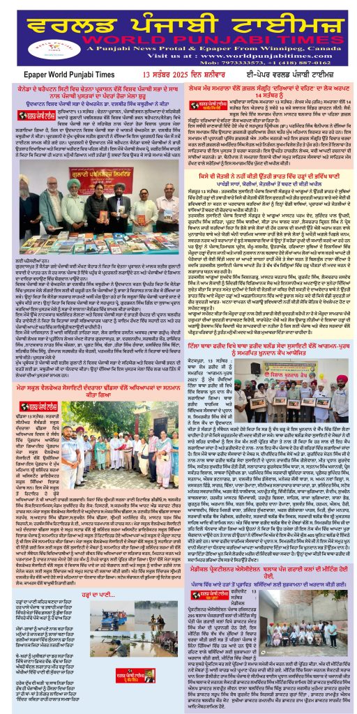 Posted inਈ-ਪੇਪਰ World Punjabi Times-13.09.2025 Posted by worldpunjabitimes September 13, 2025No Comments 13.09.25Download worldpunjabitimes View All Posts Post navigation Previous Post ਕੈਨੇਡਾ ਦੇ ਬਰੈਪਟਨ ਸਿਟੀ ਵਿਚ ਚੇਤਨਾ ਪ੍ਰਕਾਸ਼ਨ ਵੱਲੋਂ ਵਿਸ਼ਵ ਪੰਜਾਬੀ ਸਭਾ ਦੇ ਸਾਥ ਨਾਲ ਪੰਜਾਬੀ ਪੁਸਤਕਾਂ ਦਾ ਪੰਦਰਾਂ ਰੋਜ਼ਾ ਮੇਲਾ ਸ਼ੁਰੂNext Post‘ਕੂੜ ਨਾ ਪਹੁੰਚੇ ਸੱਚ ਨੂੰ’ ਪੁਸਤਕ ਲੋਕ ਅਰਪਨ