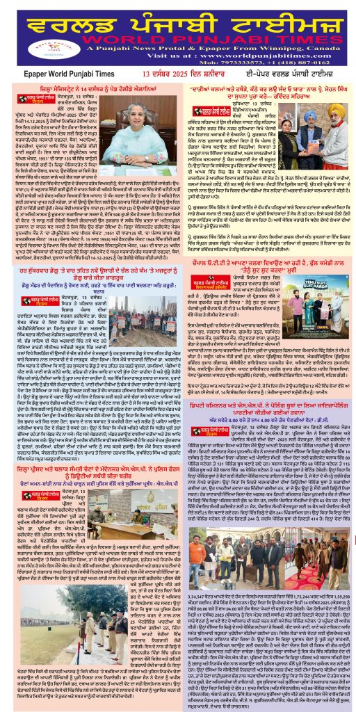 Posted inਈ-ਪੇਪਰ World Punjabi Times-13.12.2025 Posted by worldpunjabitimes December 13, 2025No Comments 13.12.2025Download worldpunjabitimes View All Posts Post navigation Previous Post ਡਿਪਟੀ ਕਮਿਸ਼ਨਰ ਅਤੇ ਐਸ.ਐਸ.ਪੀ. ਨੇ ਪੋਲਿੰਗ ਬੂਥਾਂ ਦਾ ਲਿਆ ਜਾਇਜ਼ਾਪੋਲਿੰਗ ਪਾਰਟੀਆਂ ਕੀਤੀਆਂ ਗਈਆਂ ਰਵਾਨਾNext Postਠੋਸ ਰਹਿੰਦ-ਖੂੰਹਦ ਨੂੰ ਸਾੜਨ ਤੋਂ ਰੋਕਣ ਲਈ ਨਗਰ ਕੌਂਸਲ ਵਿਖੇ ਜਾਗਰੂਕਤਾ-ਕਮ-ਸਿਖਲਾਈ ਸੈਸ਼ਨ ਦਾ ਆਯੋਜਨ