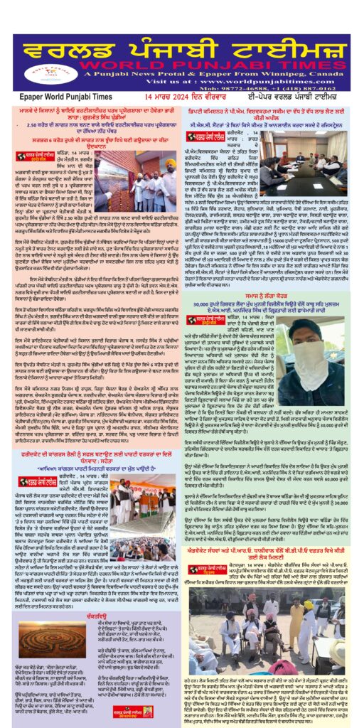 Posted inਈ-ਪੇਪਰ World Punjabi times-14.03.2024 Posted by worldpunjabitimes March 14, 2024No Comments 14.03.24Download worldpunjabitimes View All Posts Post navigation Previous Post ਕੁੜੀਆਂ – ਚਿੜੀਆਂNext Postਡਾਕਟਰ ਰਾਜ ਕੁਮਾਰ ਚੱਬੇਵਾਲ ਨੇ ਹੱਥ ਛੱਡ ਕੇ ਝਾੜੂ ਨੂੰ ਹੱਥ ਪਾਇਆ