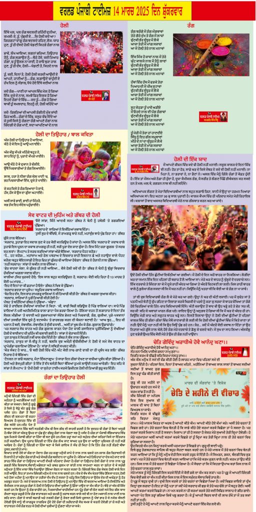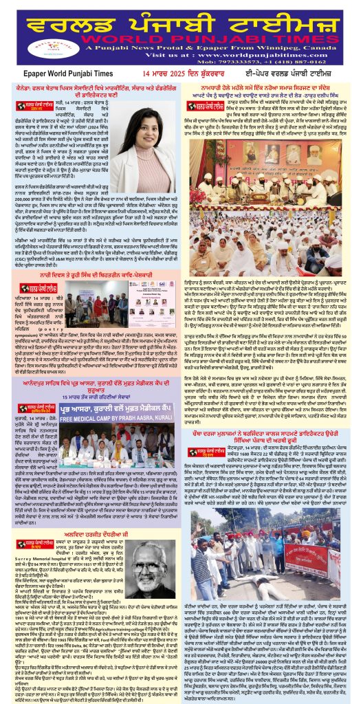 Posted inਈ-ਪੇਪਰ World Punjabi Times-14.03.2025 Posted by worldpunjabitimes March 14, 2025No Comments 14.03.25Download worldpunjabitimes View All Posts Post navigation Previous Post ਚੇਤਿ ਗੋਵਿੰਦੁ ਅਰਾਧੀਐ ਹੋਵੈ ਆਨੰਦੁ ਘਣਾ।।Next Postਹੋਲਾ ਮਹੱਲਾ