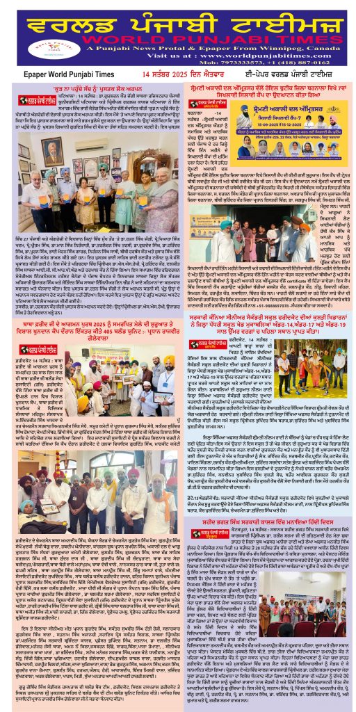 Posted inਈ-ਪੇਪਰ World Punjabi Times-14.09.2025 Posted by worldpunjabitimes September 14, 2025No Comments 14.09.2025Download Share this:Post Click to share on WhatsApp (Opens in new window) WhatsApp worldpunjabitimes View All Posts Post navigation Previous Post ਸ਼ੇਪ ਇੰਡੀਆ ਵੱਲੋਂ ਐਚ.ਆਈ.ਵੀ./ਏਡਜ ਜਾਗਰੂਕਤਾ ਨੂੰ ਲ਼ੈ ਕੇ ਟਰੇਨਿੰਗ ਸੈਸ਼ਨ ਲਗਾਇਆ ਗਿਆNext Postਜੋਤੀ ਮਾਡਲ ਸੀਨੀ. ਸੈਕੰ. ਸਕੂਲ ਦੇ ਵਿਦਿਆਰਥੀਆਂ ਨੇ ਜ਼ਿਲ੍ਹਾ ਪੱਧਰੀ ਖੇਡ ਮੁਕਾਬਲਿਆਂ ’ਚ ਮਾਰੀਆਂ ਮੱਲ੍ਹਾਂ