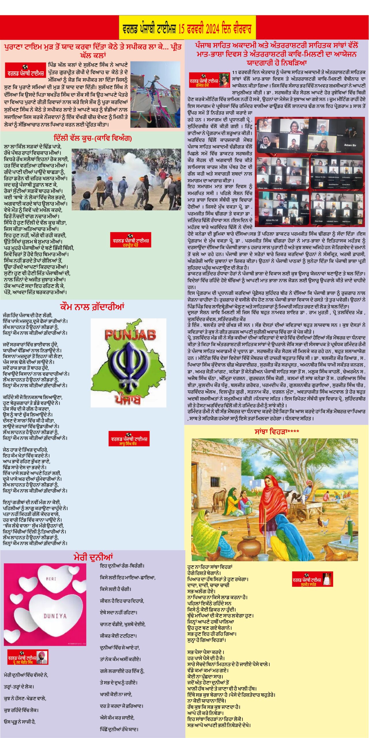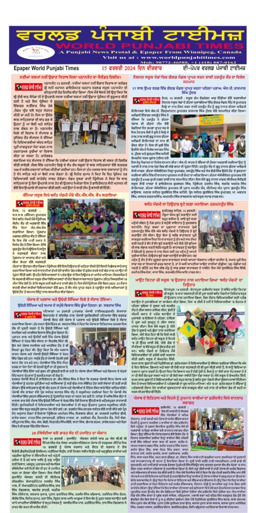 Posted inਈ-ਪੇਪਰ World Punjabi Times-15.02.2024 Posted by worldpunjabitimes February 15, 2024No Comments 15.02.24Download Share this:Post Click to share on WhatsApp (Opens in new window) WhatsApp worldpunjabitimes View All Posts Post navigation Previous Post ਸਿਲਵਰ ਓਕਸ ਸਕੂਲ ਸੇਵੇਵਾਲਾ ਦੇ ਵਿਦਿਆਰਥੀਆਂ ਨੇ ਐਲਨ ਪ੍ਰੀਖਿਆ ’ਚ ਪਾਈ ਸਫਲਤਾNext Postਸਾਹਿਤਕਾਰ ਤੇ ਪੱਤਰਕਾਰ ਡਾ. ਗੁਰਵਿੰਦਰ ਅਮਨ ਨੂੰ ਸਦਮਾ, ਸੱਸ-ਮਾਂ ਦਾ ਅਕਾਲ ਚਲਾਣਾ