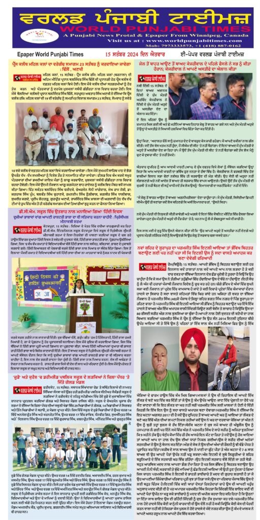 Posted inਈ-ਪੇਪਰ World Punjabi Times-15.09.2024 Posted by worldpunjabitimes September 15, 2024No Comments 15.09.2024Download worldpunjabitimes View All Posts Post navigation Previous Post ‘ਜੂਡੋ’ ਅਤੇ ਕੁਰੈਸ਼ ’ਚ ਡਰੀਮਲੈਂਡ ਪਬਲਿਕ ਸਕੂਲ ਦੇ ਲੜਕਿਆਂ ਨੇ ਜ਼ਿਲਾ ਪੱਧਰ ’ਤੇ ਜਿੱਤੇ ਗੋਲਡ ਮੈਡਲNext Postਡਾ. ਰਵਿੰਦਰ ਕਾਨਵੈਂਟ ਸਕੂਲ ਵਿਖੇ ‘ਹਿੰਦੀ ਦਿਵਸ ‘ਬੜੀ ਧੂਮ ਧਾਮ ਨਾਲ ਮਨਾਇਆ ਗਿਆ