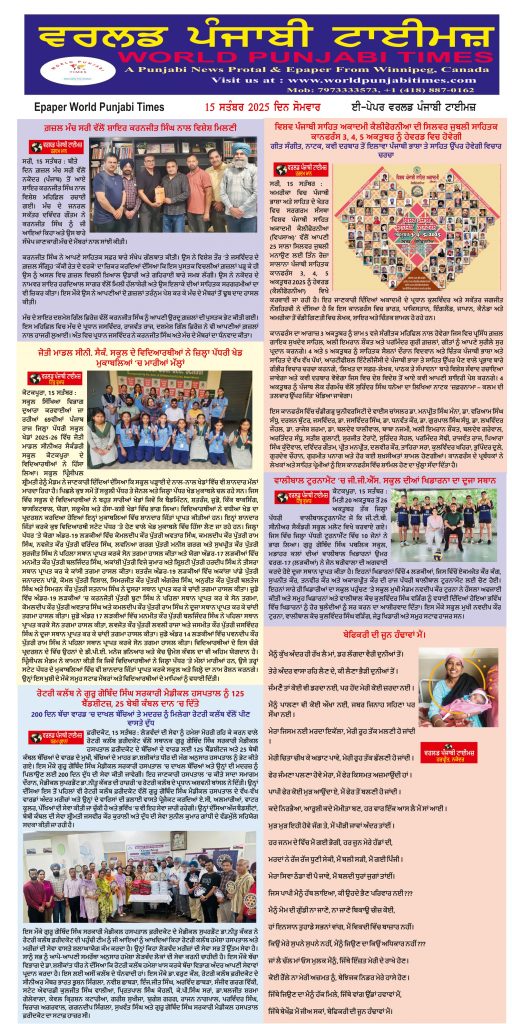 Posted inਈ-ਪੇਪਰ World Punjabi Times-15.09.2025 Posted by worldpunjabitimes September 15, 2025No Comments 15.09.2025Download worldpunjabitimes View All Posts Post navigation Previous Post ਰੁੜ੍ਹ ਗਈਆਂ ਜਾਨਾਂNext Post16 ਸਤੰਬਰ ਨੂੰ ਵਿਸ਼ਵ ਓਜ਼ੋਨ ਦਿਵਸ ਤੇ ਵਿਸ਼ੇਸ਼।