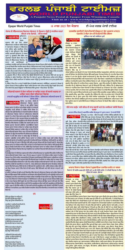 Posted inਈ-ਪੇਪਰ World Punjabi Times-16.03.2025 Posted by worldpunjabitimes March 16, 2025No Comments 16.03.2025Download worldpunjabitimes View All Posts Post navigation Previous Post ਟੱਪੇNext Postਹੰਕਾਰ ਨਾ ਹੁੰਦਾ