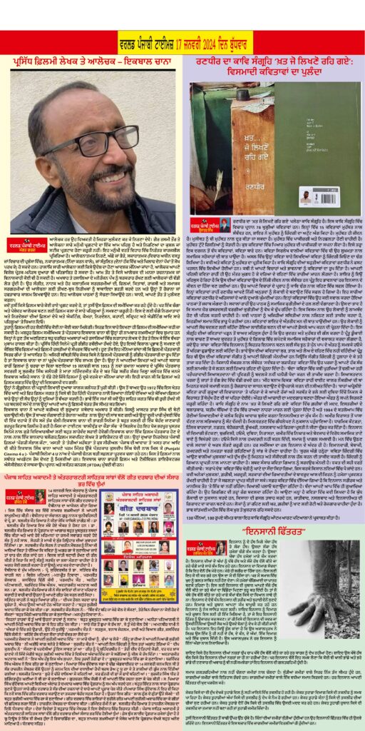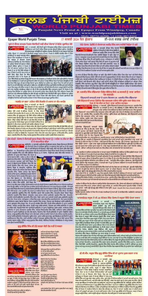 Posted inਈ-ਪੇਪਰ World Punjabi Times-17.01.2024 Posted by worldpunjabitimes January 17, 2024No Comments 17.01.24Download worldpunjabitimes View All Posts Post navigation Previous Post ਪੰਜਾਬ ਸਾਹਿਤ ਅਕਾਦਮੀ ਤੇ ਅੰਤਰਰਾਸ਼ਟਰੀ ਸਾਹਿਤਕ ਸਾਂਝਾਂ ਵੱਲੋਂ ਗੀਤ ਦਰਬਾਰ ਦੀਆਂ ਸੰਸਾਰ ਭਰ ਵਿੱਚ ਧੁੰਮਾਂNext Postਰੱਬਾ ਜ਼ਿੰਦਗੀ ਬੀਤ ਰਹੀ ਏ