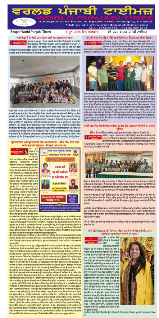 Posted inਈ-ਪੇਪਰ World Punjabi Times-18.06.2024 Posted by worldpunjabitimes June 18, 2024No Comments 18.06.2024_page-0001-1Download worldpunjabitimes View All Posts Post navigation Previous Post ਕਾਮਰੇਡ ਇੰਦਰਜੀਤ ਮੁਕਤਸਰ ਦੇ ਅਚਾਨਕ ਵਿਛੋੜੇ ’ਤੇ ਦੁੱਖ ਪ੍ਰਗਟNext Post“ਐਮ ਐਮ ਆਰਟ ਥੀਏਟਰ ਐਂਡ ਫ਼ਿਲਮਜ਼” ਦੇ ਬੈਨਰ ਥੱਲੇ ਖੇਡਾਂਗਾ ਆਪਣੇ ਨਾਟਕ: ਰਮੇਸ਼ ਗਰਗ ਐਮ ਐਮ