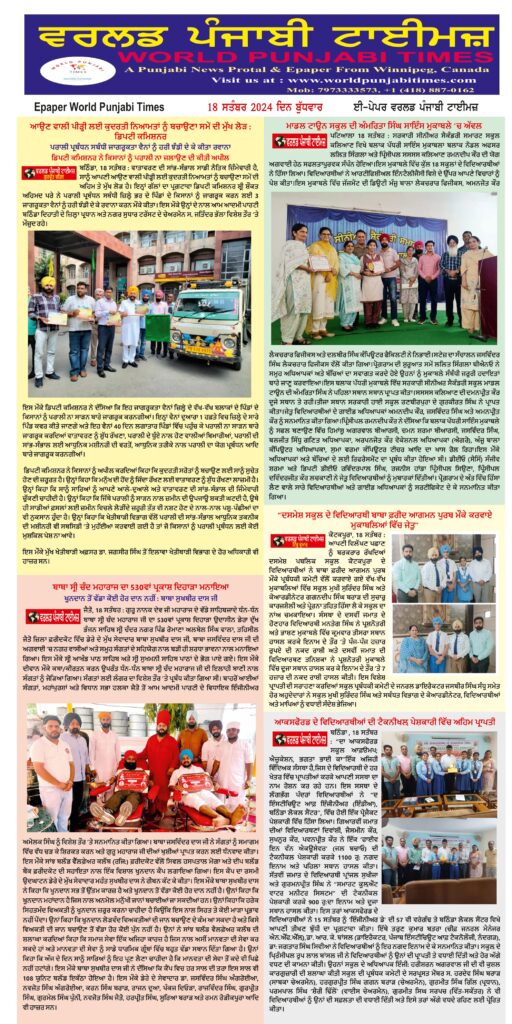 Posted inਈ-ਪੇਪਰ World Punjabi Times-18.09.2024 Posted by worldpunjabitimes September 18, 2024No Comments 18.09.24Download worldpunjabitimes View All Posts Post navigation Previous Post ਬਾਬਾ ਸ੍ਰੀ ਚੰਦ ਮਹਾਰਾਜ ਦਾ 530ਵਾਂ ਪ੍ਰਕਾਸ਼ ਦਿਹਾੜਾ ਮਨਾਇਆNext Postਗੁਰੂ ਗ੍ਰੰਥ ਸਾਹਿਬ ਜੀ***”