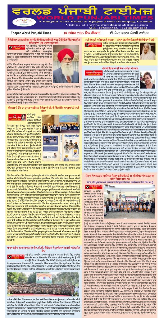 Posted inਈ-ਪੇਪਰ World Punjabi Times-18.12.2025 Posted by worldpunjabitimes December 18, 2025No Comments 18.12.2025Download worldpunjabitimes View All Posts Post navigation Previous Post ਡੀ.ਸੀ. ਫ਼ਰੀਦਕੋਟ ਬਾਬਾ ਫਰੀਦ ਜੀ ਦਾ ਅਸ਼ੀਰਵਾਦ ਲੈਣ ਪਹੁੰਚੇNext Postਵੋਟਾਂ ਆਈਆਂ ਨੇ