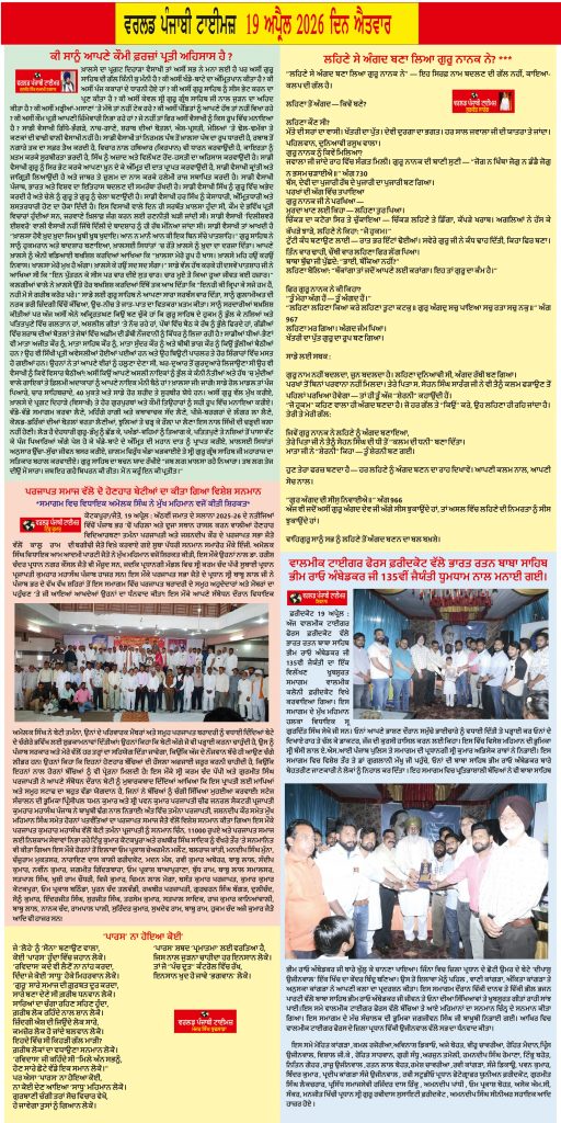 Posted inਈ-ਪੇਪਰ World Punjabi Times-19.04.2026 Posted by worldpunjabitimes April 19, 2026No Comments 19.04.26Download worldpunjabitimes View All Posts Post navigation Previous Post ਸਰੀ ਨਗਰ ਕੀਰਤਨ ਦੀਆਂ ਸਾਰੀਆਂ ਸੰਗਤਾਂ ਨੂੰ ਲੱਖ ਲੱਖ ਵਧਾਈਆਂ,
