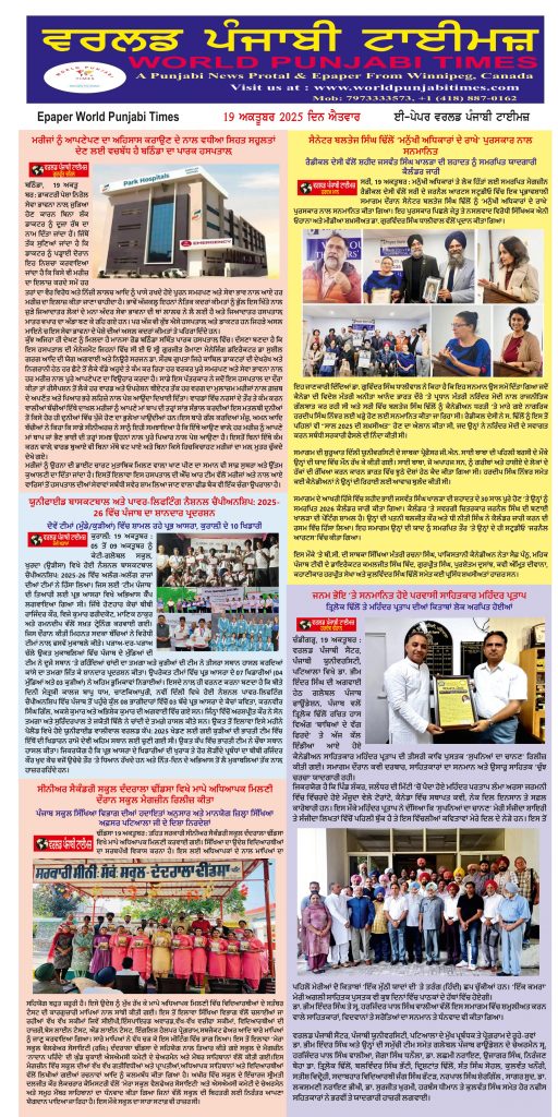 Posted inਈ-ਪੇਪਰ World Punjabi Times-19.10.2025 Posted by worldpunjabitimes October 19, 2025No Comments 19.10.25Download worldpunjabitimes View All Posts Post navigation Previous Post ਮੈਡੀਕਲ ਪ੍ਰੈਕੀਸ਼ਨਰਜ਼ ਐਸੋਸੀਏਸਨ ਪੰਜਾਬ ਦੇ ਬਲਾਕ ਫਰੀਦਕੋਟ ਦੇ ਤੀਸਰੀ ਬਾਰ ਸਰਬਸੰਮਤੀ ਨਾਲ ਬਣੇ ਬਲਾਕ ਪ੍ਰਧਾਨ ਡਾਕਟਰ ਅੰਮ੍ਰਿਤਪਾਲ ਸਿੰਘ ਟਹਿਣਾ Next Postਖੁਸ਼ੀ ਦੀ ਆਮਦ ਦਾ ਪਵਿੱਤਰ ਤਿਉਹਾਰ ਹੈ ਦੀਵਾਲੀ