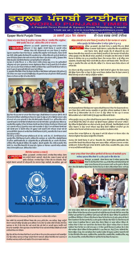 Posted inਈ-ਪੇਪਰ World Punjabi Times-20.02.2024 Posted by worldpunjabitimes February 20, 2024No Comments 20.02.2024Download Share this:Post Share on WhatsApp (Opens in new window) WhatsApp worldpunjabitimes View All Posts Post navigation Previous Post ਕੌਮੀ ਲੋਕ ਅਦਾਲਤ 9 ਮਾਰਚ ਨੂੰNext Postਇਹਦੀ ਸ਼ਾਨ ਨਵਾਬੀ